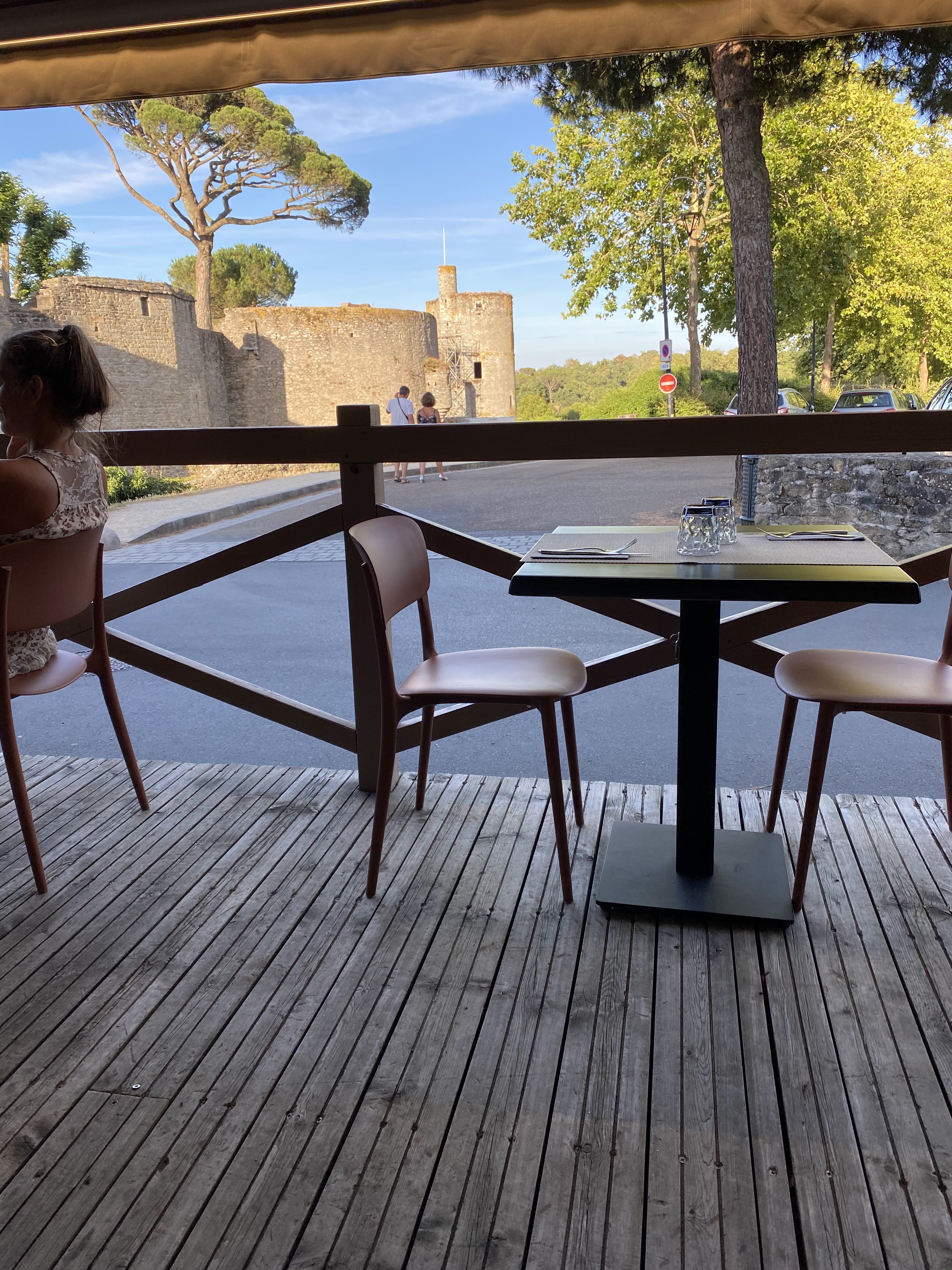 Personnel hyper sympa , plats excellents ! Allez y les yeux fermés. Vu sur le château depuis la terrasse