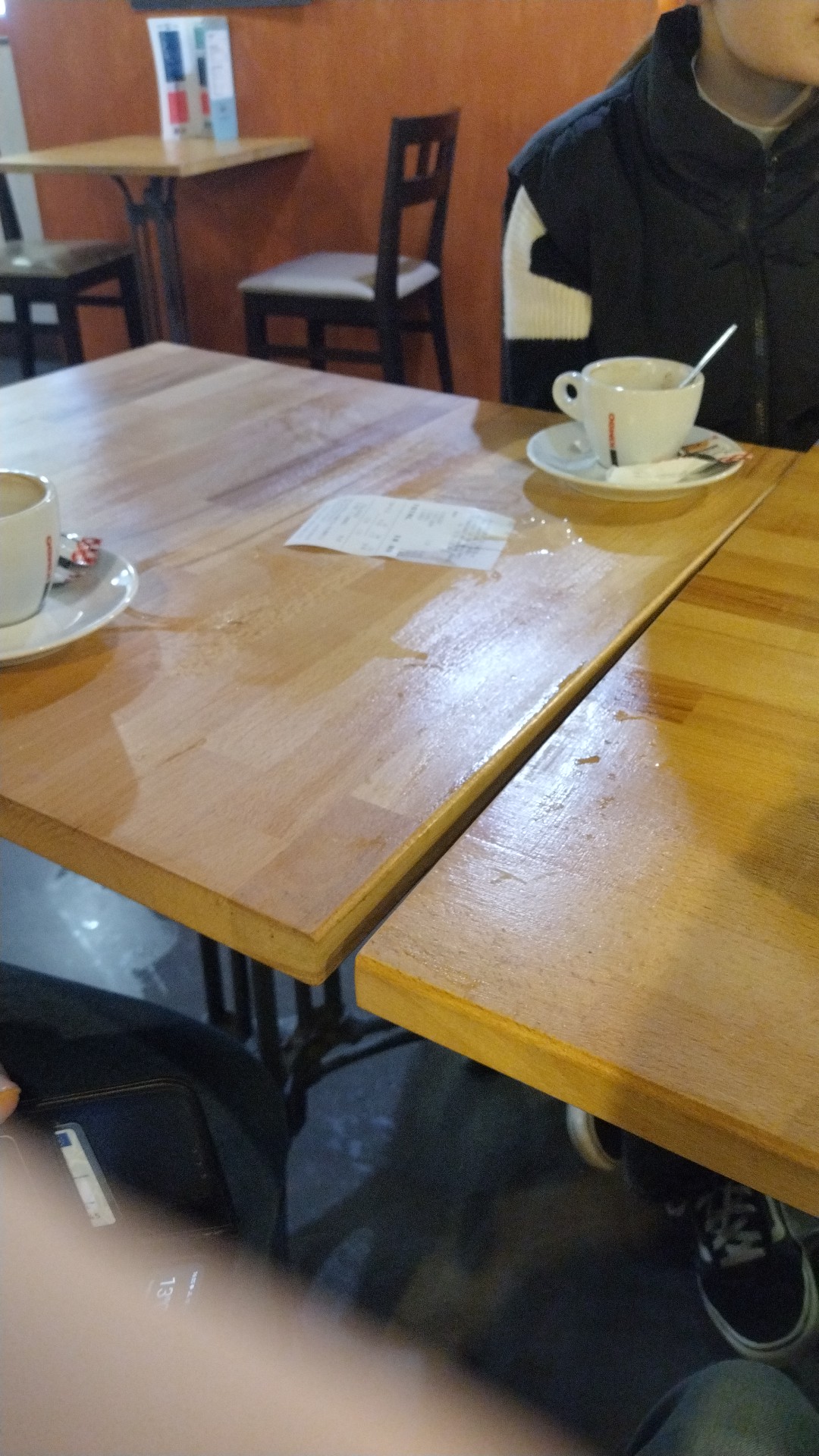Table sale, collante non nettoyée, j'ai été obligée de demander de nettoyer par terre, certainement une boisson renversée... Serveuse pas agréable et très lente, et pas polie Passez votre chemin