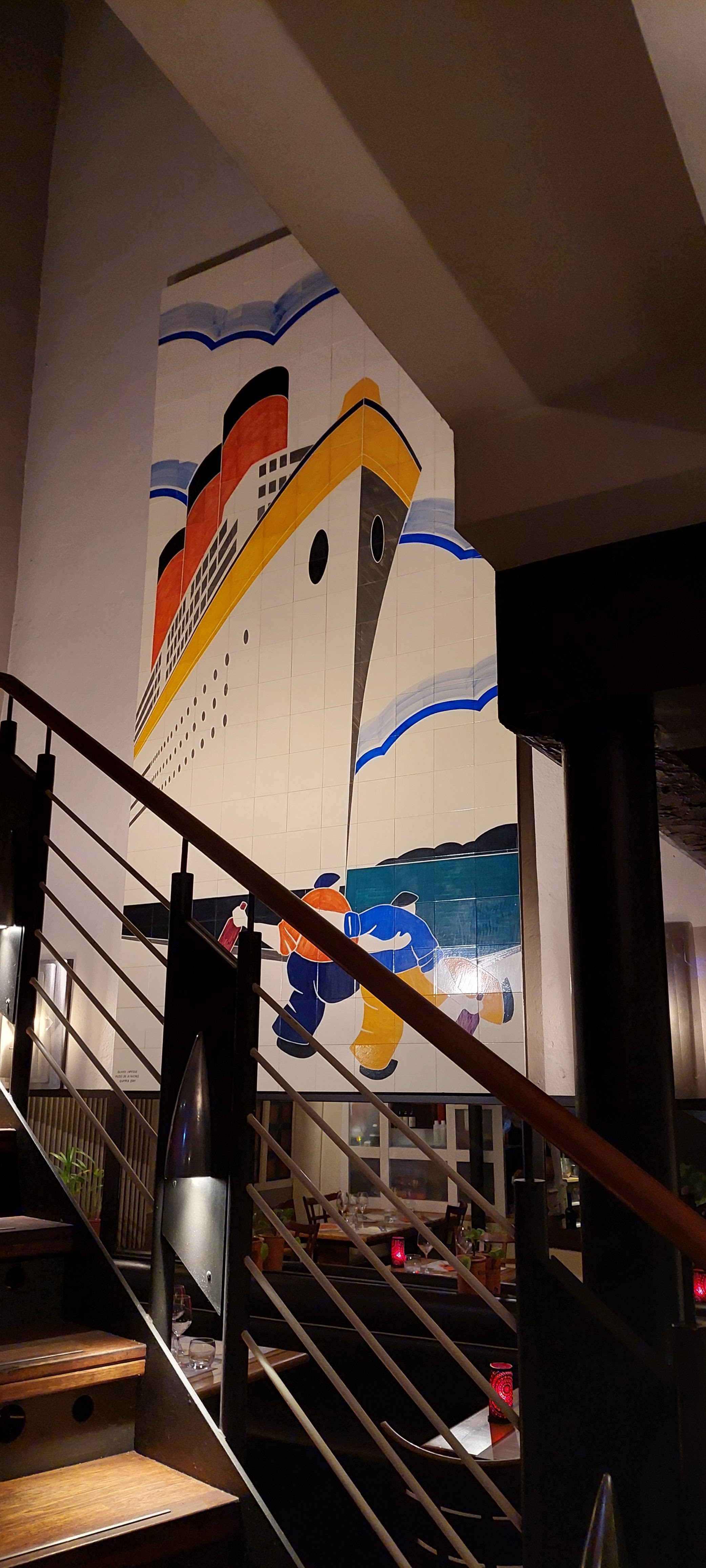 Excellente nourriture, service sympathique, ambiance agréable et prix très raisonnables. J'ai immédiatement adoré cet endroit et j'y suis allé deux fois au cours de mon séjour de 4 jours. Il faut voir les magnifiques panneaux muraux en faïence de Quimper, notamment l'immense pièce de la salle intérieure. Quant à la nourriture, j'ai pris le menu un soir. Le plat de morue au riz était très délicatement parfumé et parfaitement cuit et les desserts du café gourmand étaient délicieux mais copieux. J'étais content que mon plat principal soit assez léger car je n'ai pas un gros appétit. La deuxième fois, je suis allé chercher les linguine aux fruits de mer et c'était un grand bol de délices. Vin agréable au verre également. Je reviendrai.