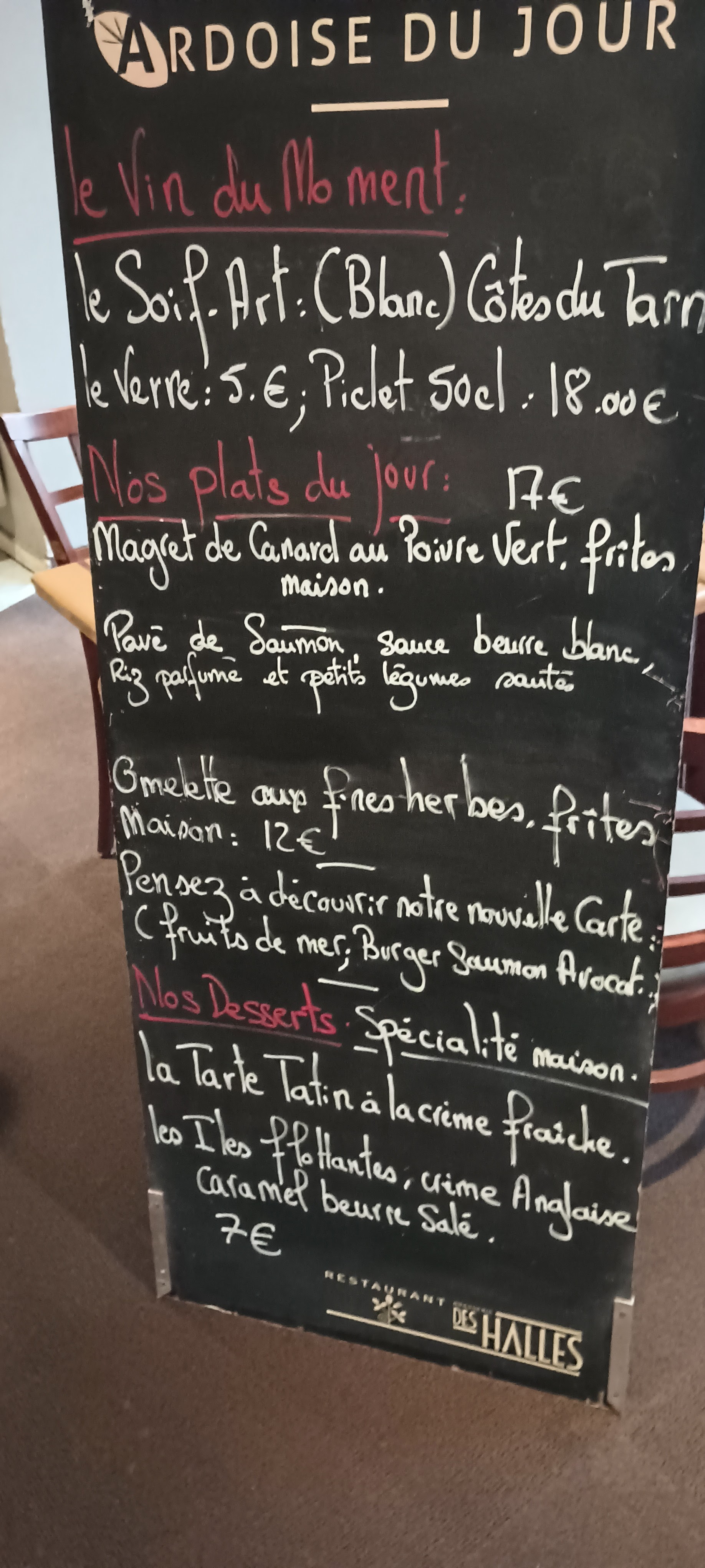 Accueil très sympa et professionnel. Plats copieux et très bons. Nous avons passé un très bon moment. Le tartare des halles était vraiment délicieux, ainsi que le foie gras en entrée. La serveuse était très gentille avec beaucoup d'humour 😁 Équipe jeune et dynamique Bonne continuation à vous tous