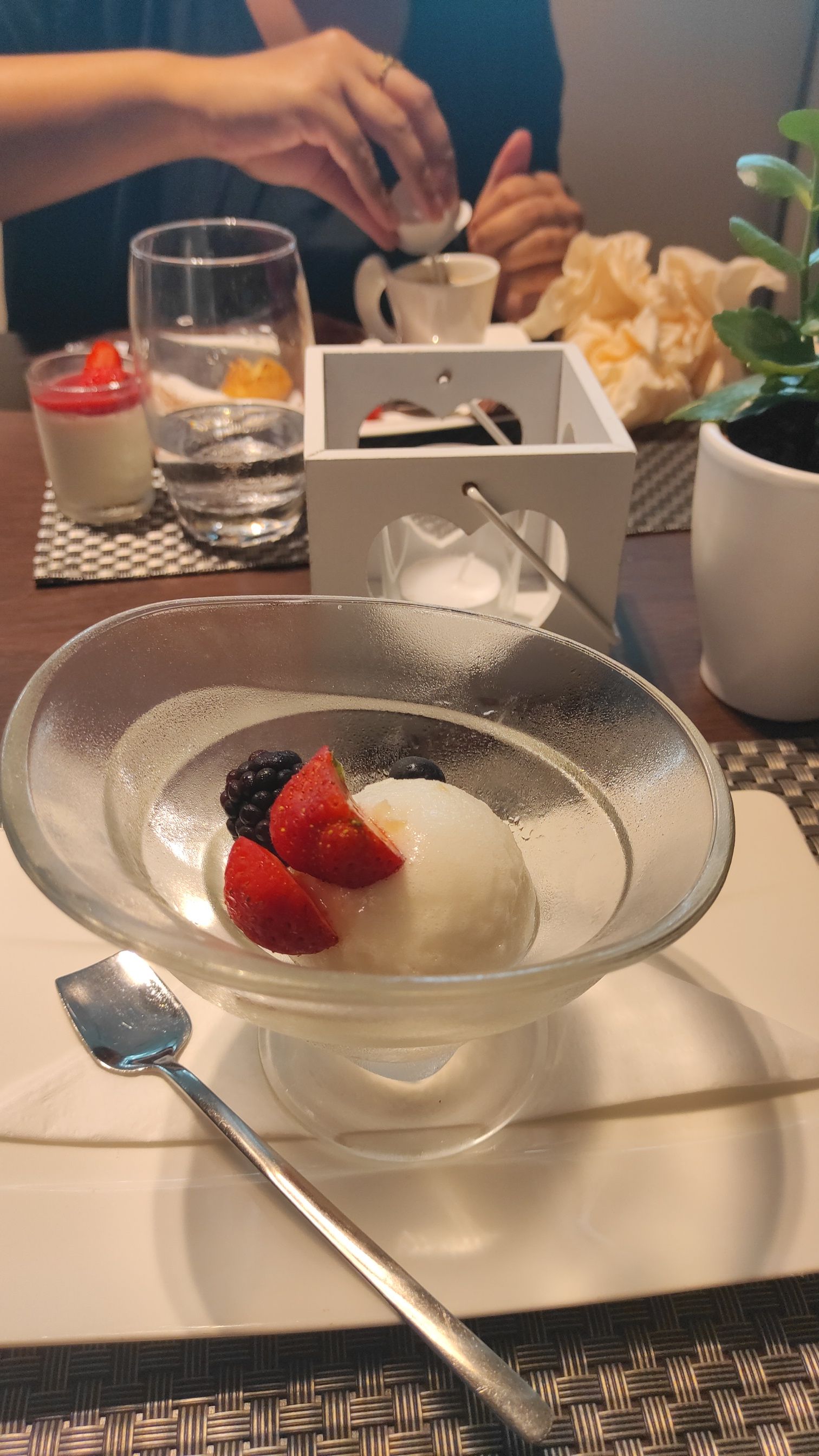 Très belle découverte. Un cadre vraiment agréable, plaisant et calme. Une serveuse très professionnelle et aux petits soins de ses clients. Un(e) cuisinier(e) très talentueux, un mariage des saveurs parfait, décoration raffinée des plats. A recommander.