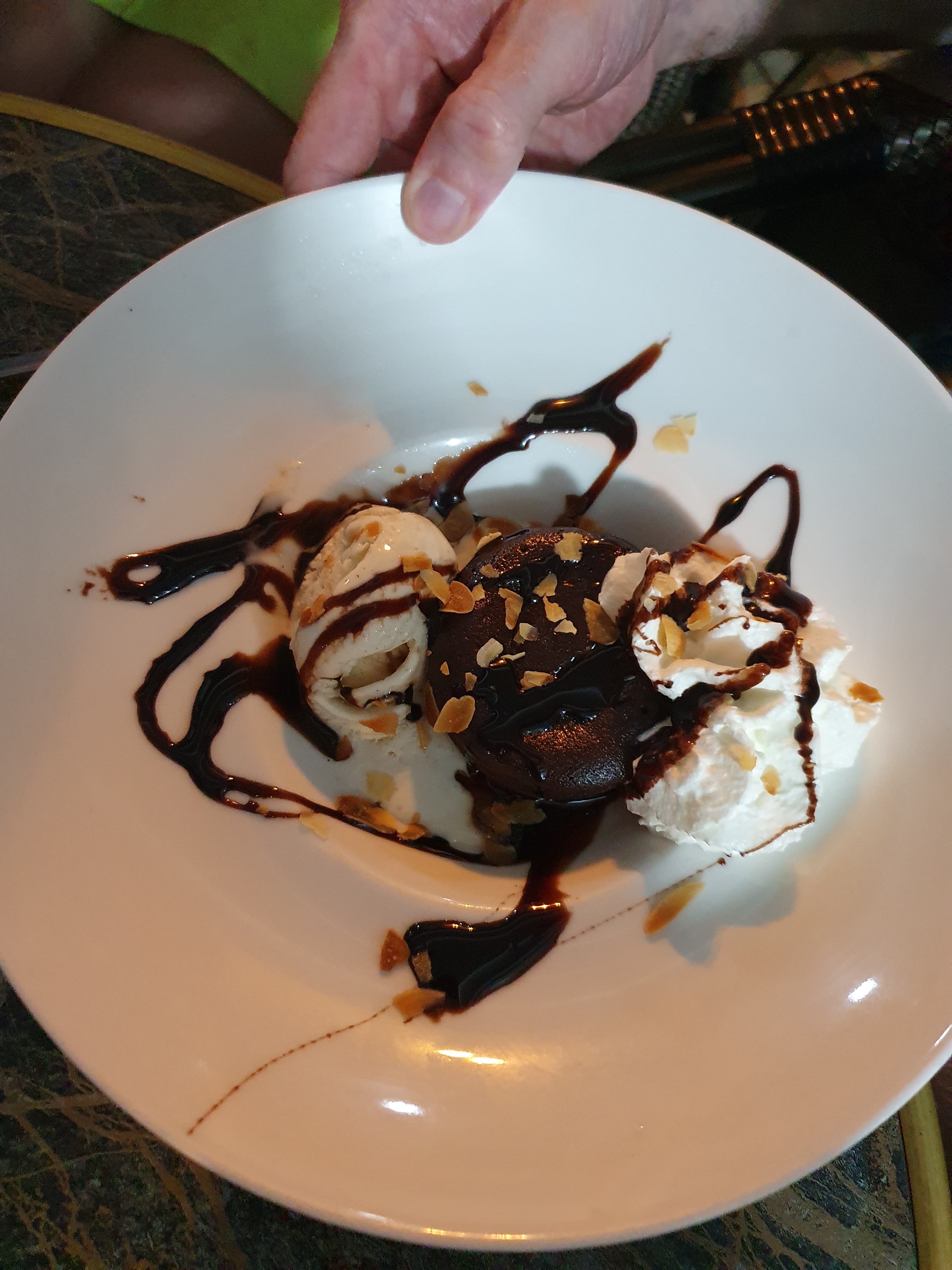Salade périgourdine excellente, filet de saint pierre très fin et un moelleux au chocolat chaud et délicieux accompagné d'une crème anglaise comme je l'aime. On s'est régalé. Je recommande. Merci. 😉