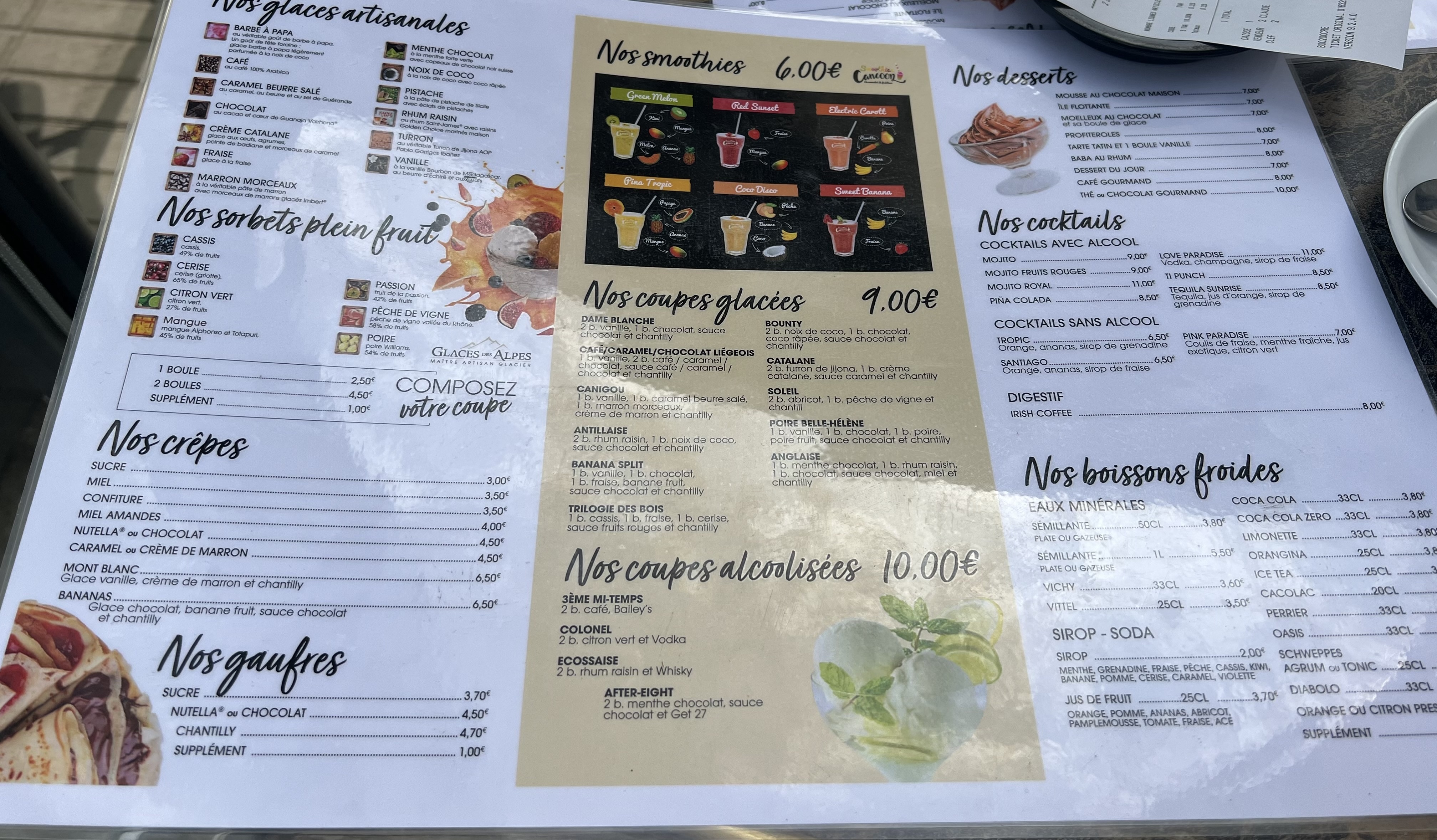 Endroit sympathique. Malgré l'apparence froide de la gérante, nous avons été servies rapidement, et correctement. La formule petit-déjeuner agreable. Coupe de glace tarif très correct. Le plus, les chiens sont acceptés 🙏❤ Je recommande !