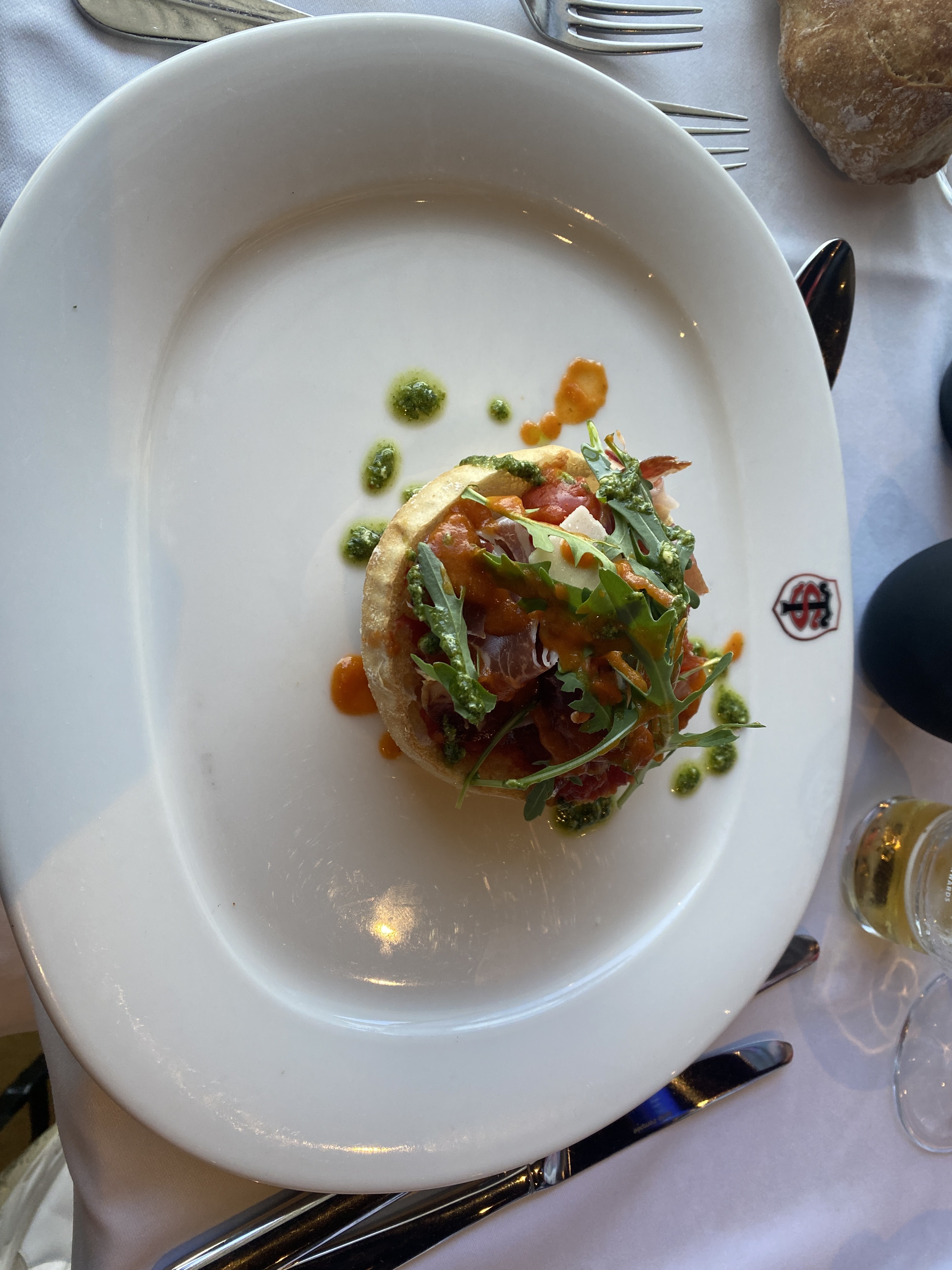 Carte originale dans l ensemble Très bon tartare de morue Bémol sur les ravioles de poulet, peu de peps et foie gras peu présent Les plats, agneau et st Jacques étaient bons