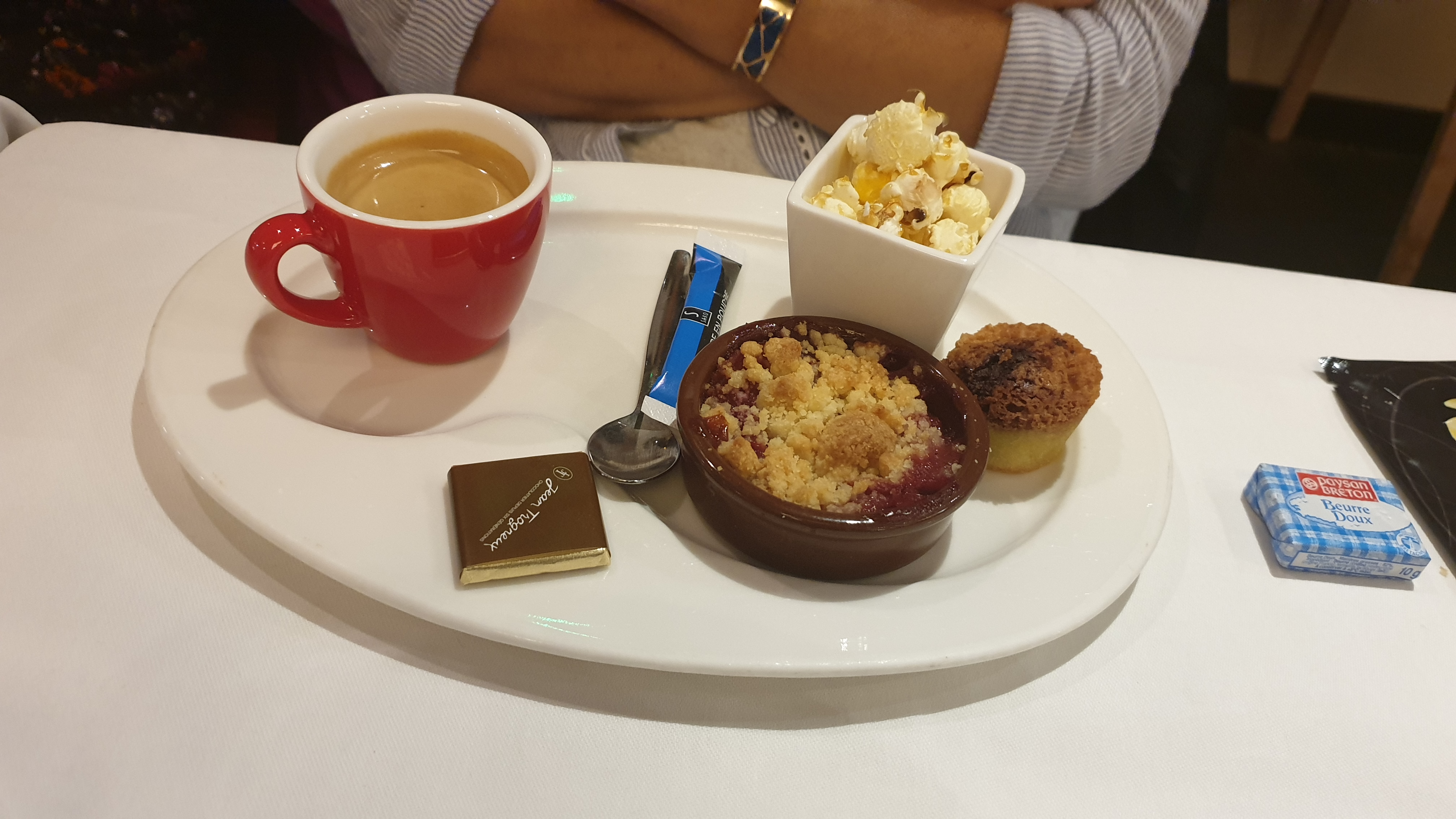 Arrêt incontournable en sortant de la gare. J'adore l'idée de la formule du jour. Le filet de loup était divin. Par contre, je n'ai pas compris la mousse au chocolat. Il peut y avoir du croustillant, mais ici le cœur de la verrine était compact et cassant.