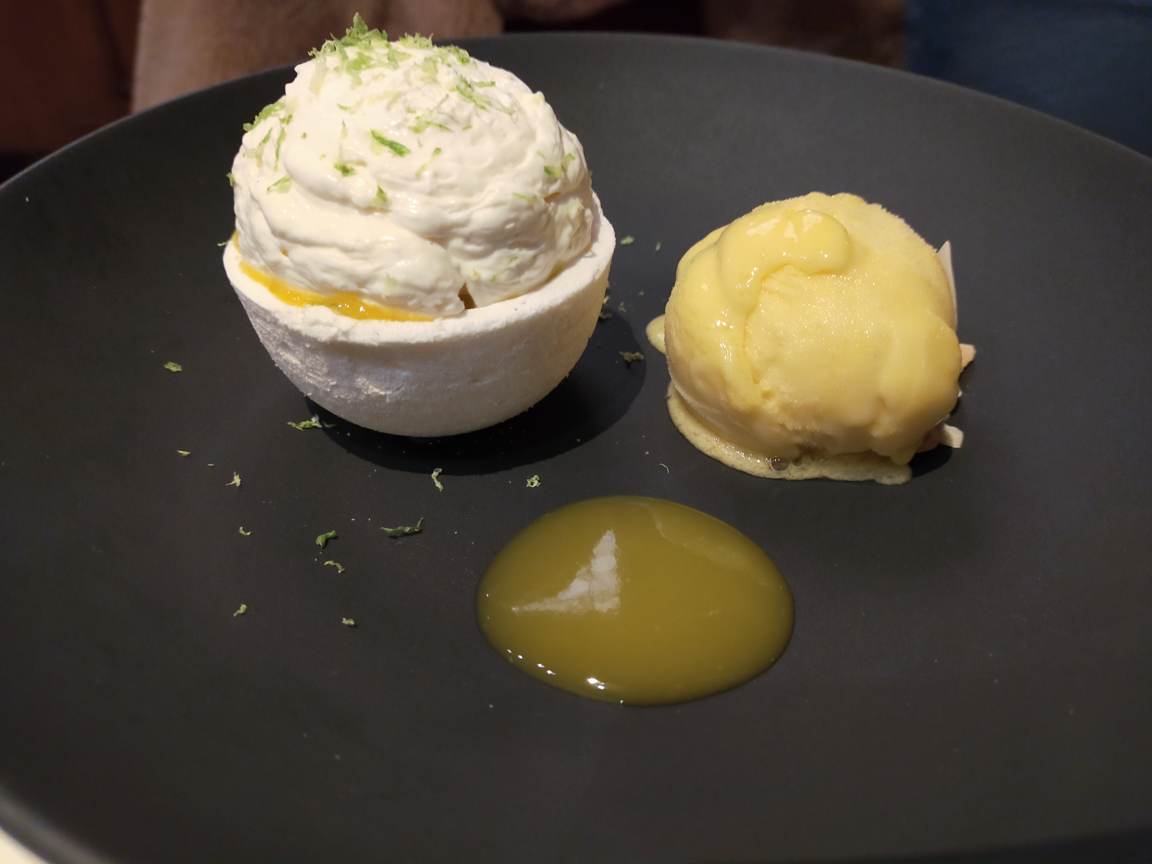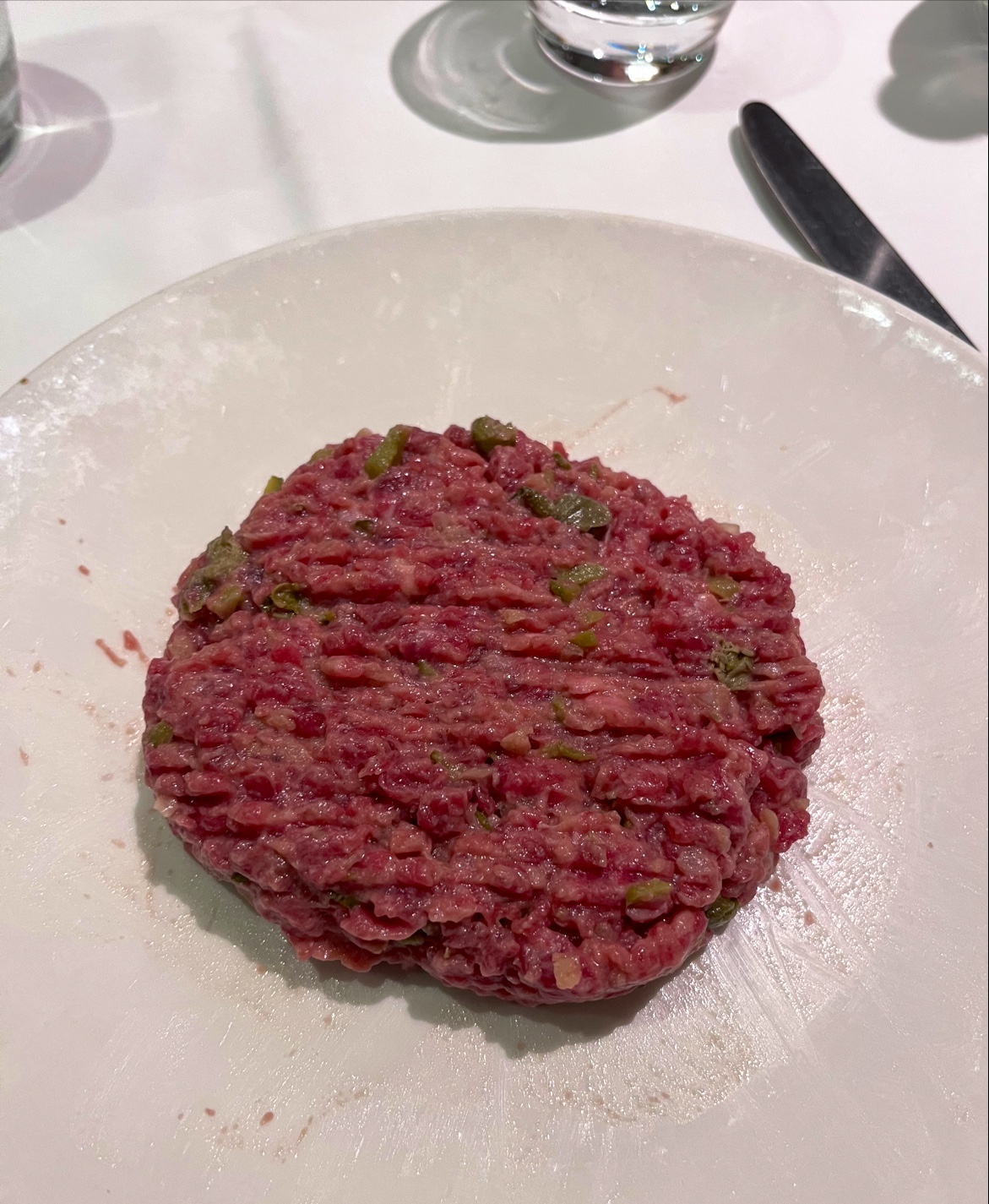 Le cadre est agréable et le plat était globalement bon. Le dessert, citron noir, manquait, à mon sens, d'équilibre. Nous avons malheureusement été très mal placé, a côté d'une zone de service où sont préparés les Steak tartares. Nous avions donc les odeurs des préparations en permanences, les préparations venant perturber notre moment et les commentaires des serveurs inappropriés et qui contrastaient avec le cadre et l'ambiance voulu du lieu. Dommage.
