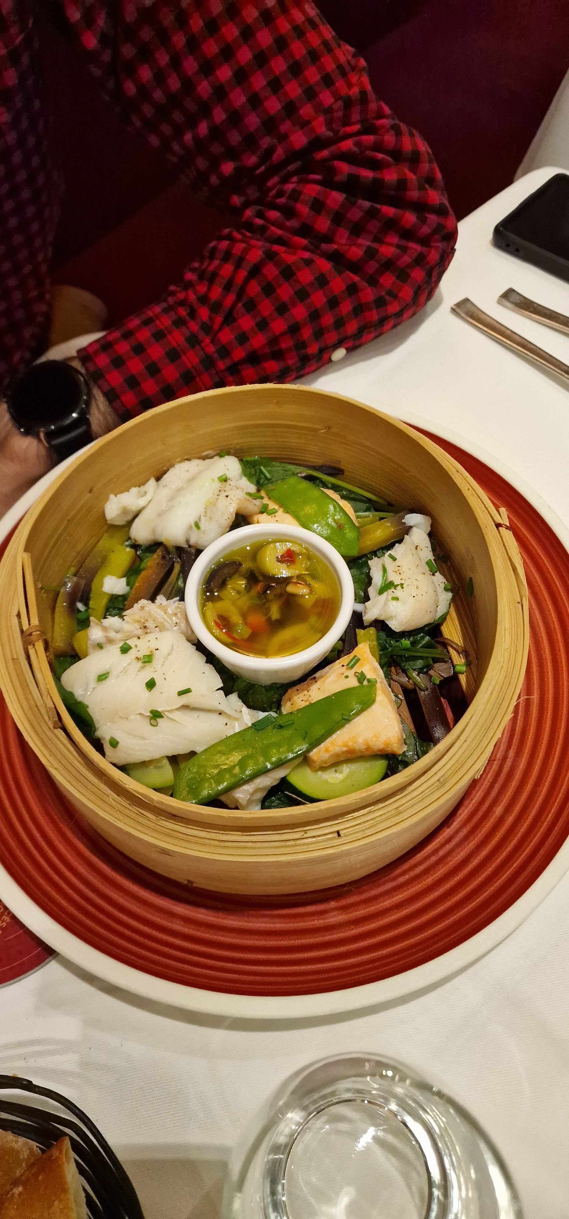 Le repas était bon, suffisant. Cependant le prix est un peu cher pour la quantité d’aliments present dans l’assiette malgré la qualité que je ne peux que souligner. Concernant l’ambiance, c’était très (voir trop) calme et on a attendu assez longtemps nos plats. Nous sommes arrivés vers 12h40 et avons finis vers 15h20. Si la nourriture était bonne, le service était malheureusement moins au rendez-vous, plutôt mou et nous avons du faire appel au serveur plusieurs fois pour avoir de l’eau qui ne nous avait pas été proposé, comme le pain, le service etc. A part le monsieur qui est venu chercher nos commandes de desserts et qui montrait sa bonne humeur malgré le masque, je n’ai pas ressenti une ambiance ni une âme particulière à ce restaurant.