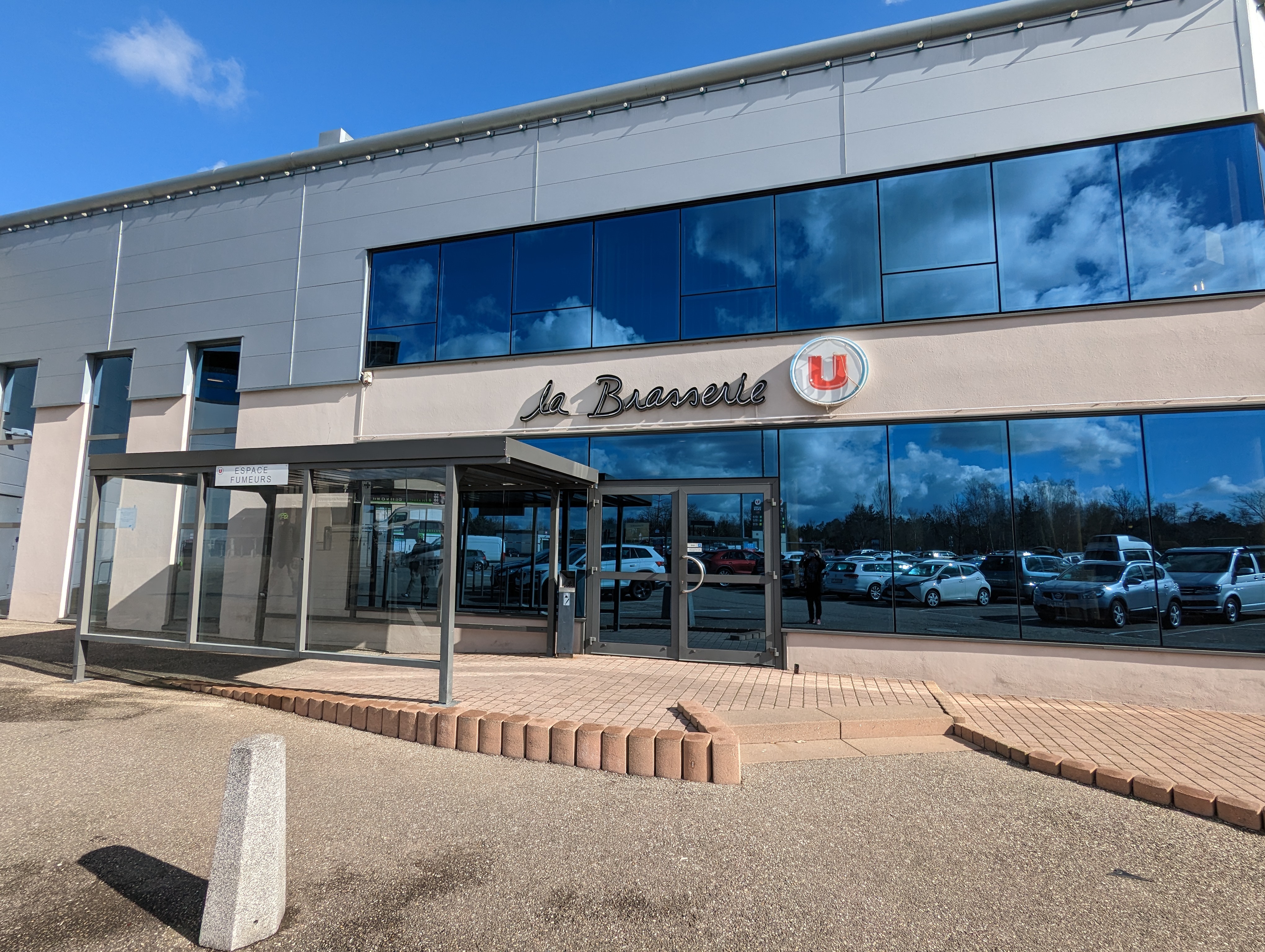 Brasserie sympa, accolé au Super U. Il y de la place pour manger. Par contre, les toilettes du super U sont accolé à la brasserie et beaucoup de monde passe par là, on ne peut donc pas vraiment dire que vous êtes tranquille. de plus, ça raisonne pas mal, ceux qui sont sensible au bruit, vous abstenir. Les prix ne sont pas les moins cher.