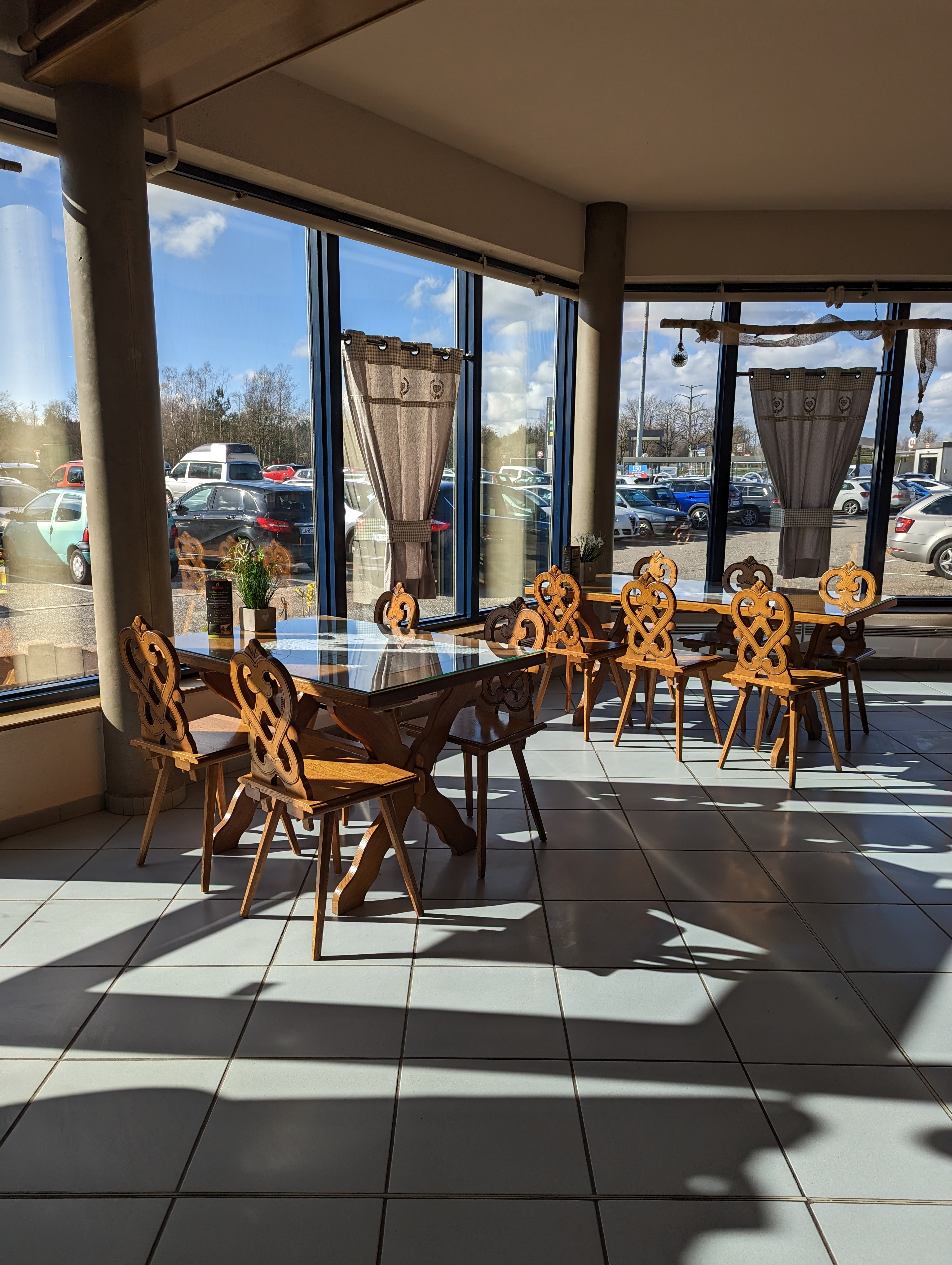Une sympathique brasserie au Super U à Selz (Alsace). Profitez d'un café latte après le shopping. Je pense que c'est du self-service car la serveuse n'est pas venue à table. Suffisamment de places de stationnement disponibles. Toilettes sans obstacle, accessibles aux fauteuils roulants et aux personnes handicapées !