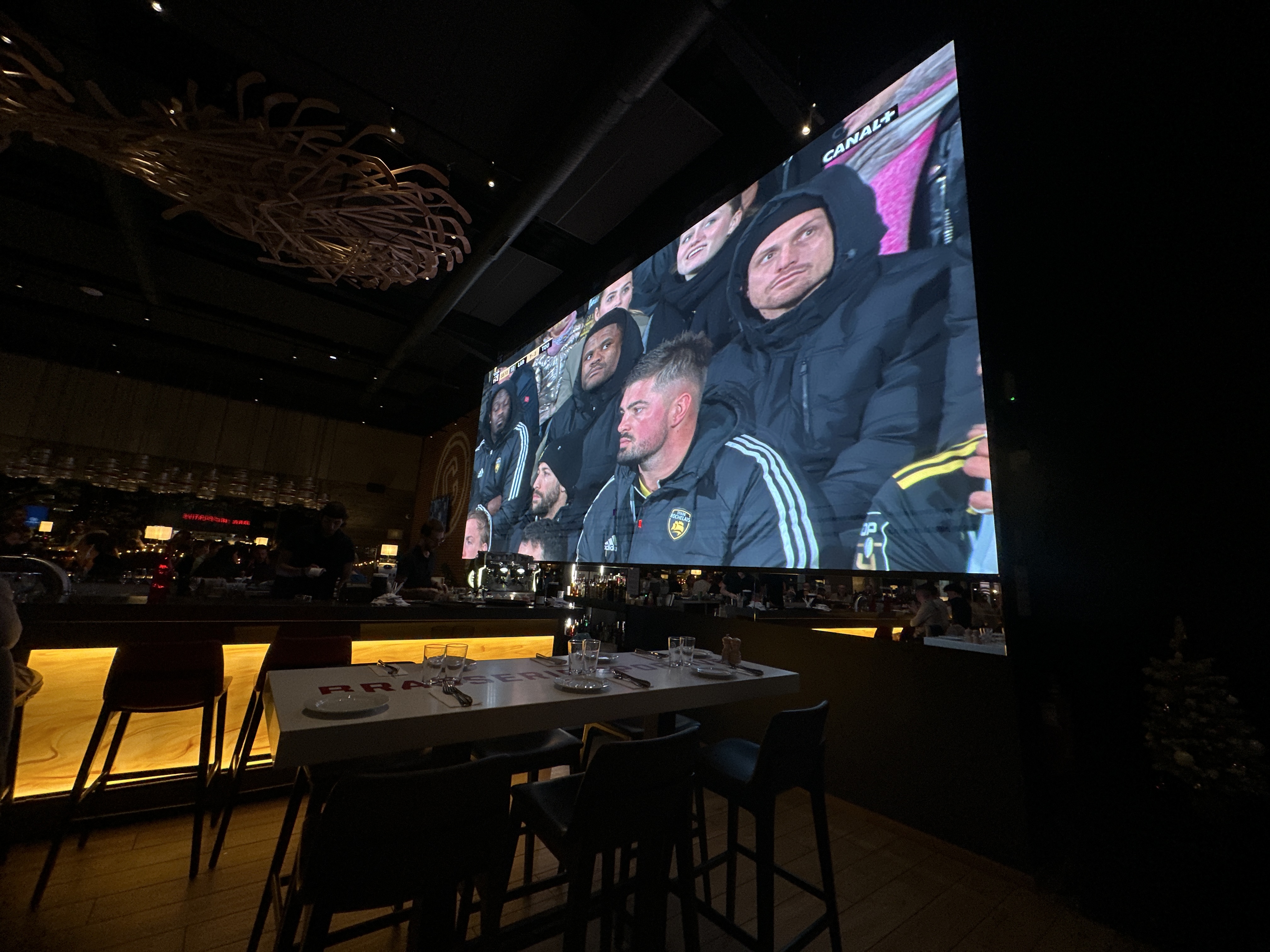 Quel superbe nouveau temple du sport, un lieu magnifique, un écran gigantesque et plein de petits écrans, le service formidable et avenant et une belle carte