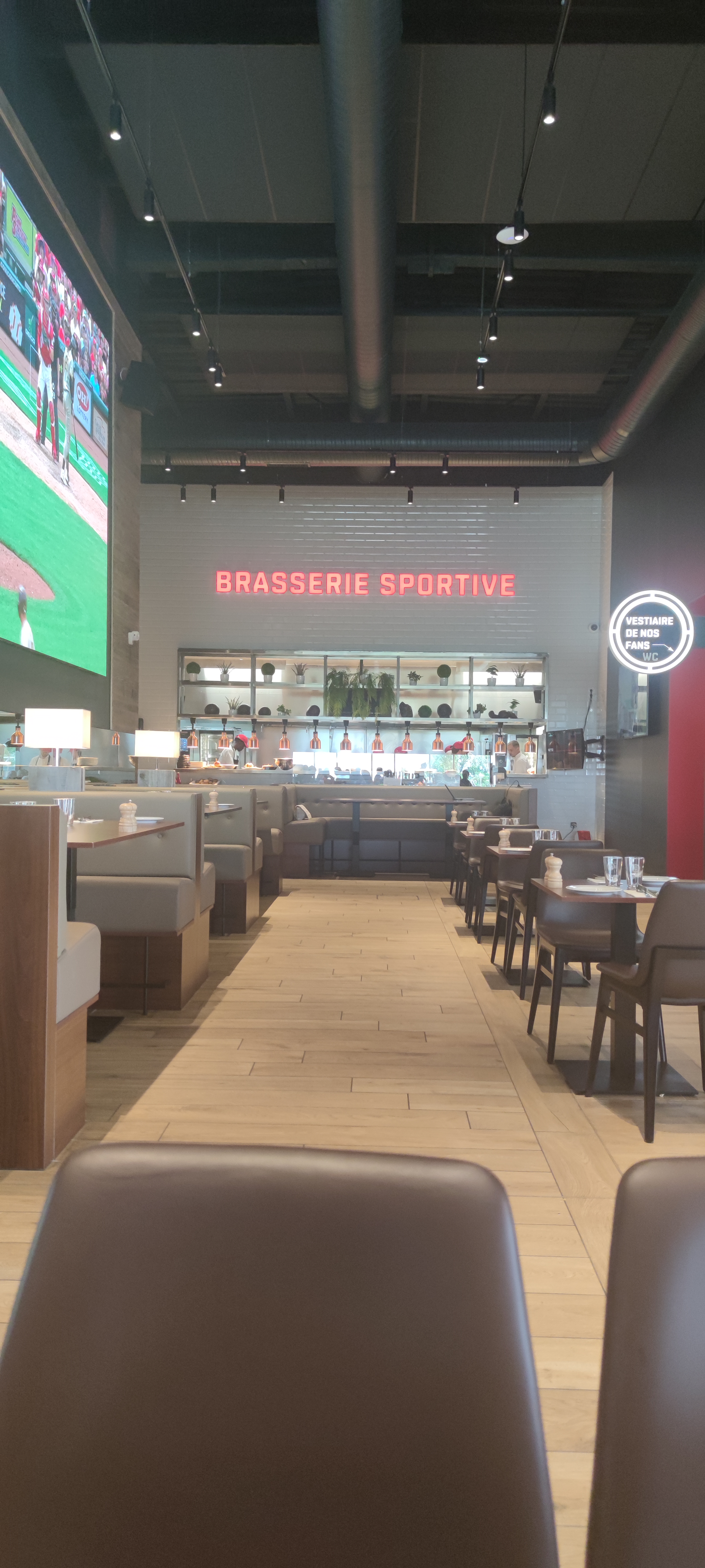 Belle brasserie sportive, la musique est un peu trop forte on ne s'entend pas Au niveau service catastrophique 2h pour un plat on vous propose pas les dessert il faut mendier un serveur le service est long comme pas possible. Lors de ma dernière visite j'ete satisfait (fin 2023) pour ce coup ci je ne reviendrai pas car 21h-minuit pour un plat un dessert c'est juste pas possible.