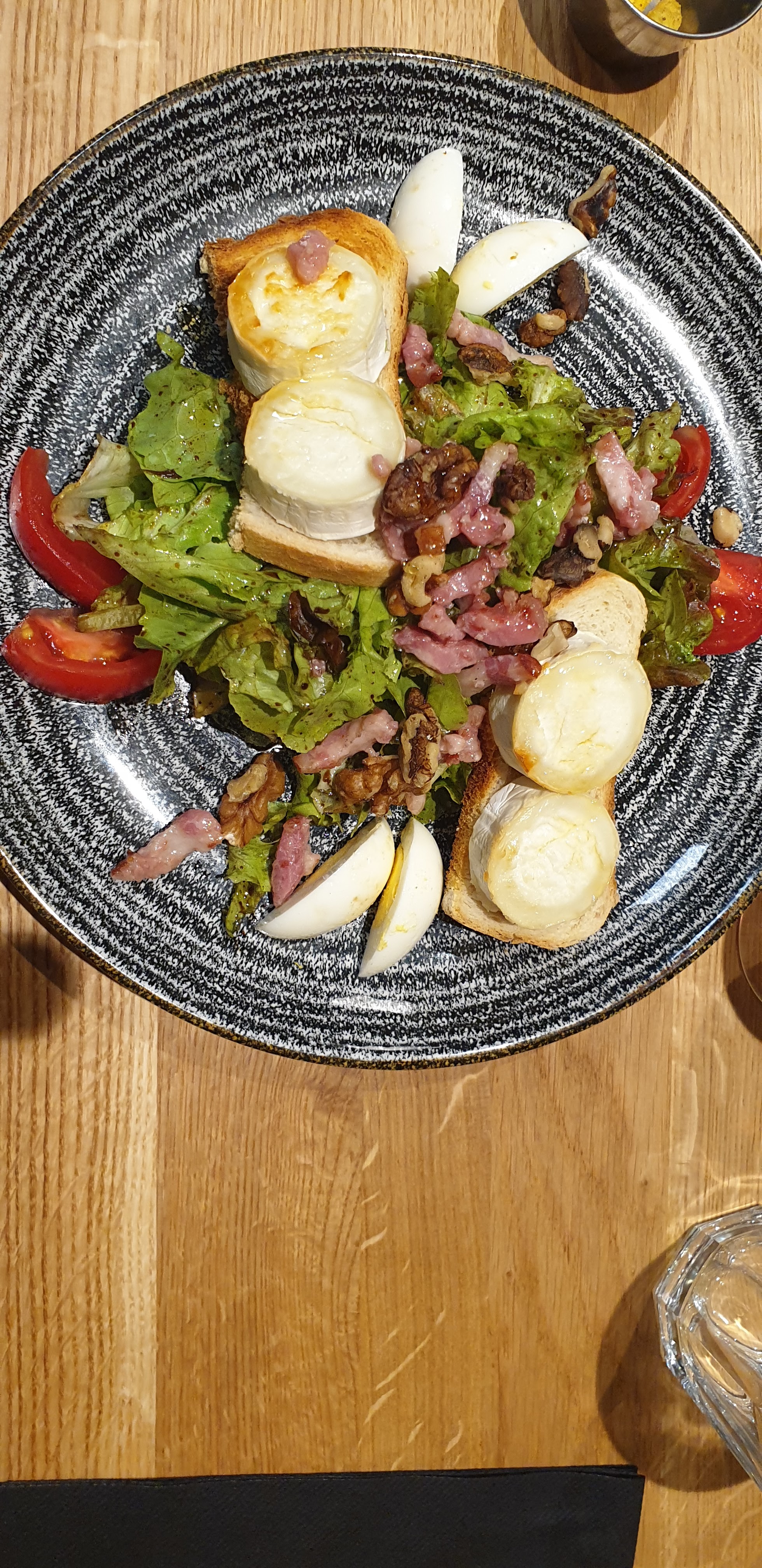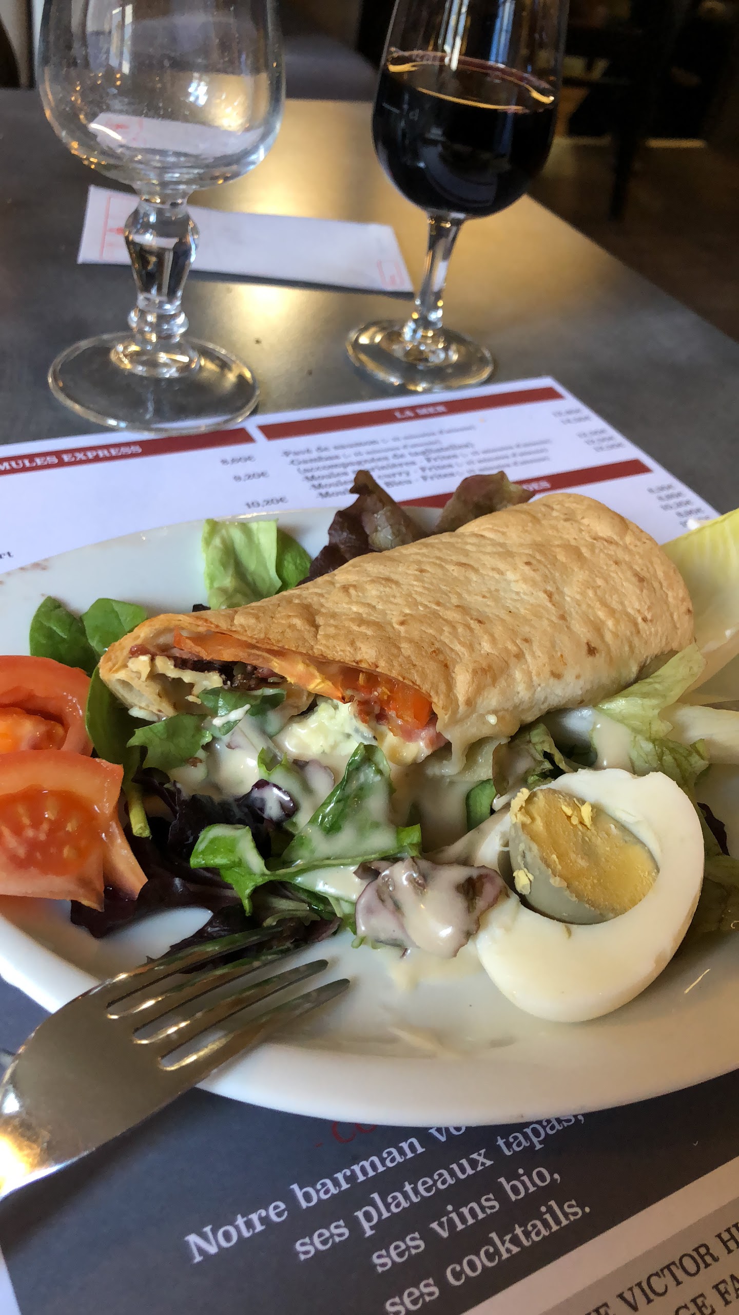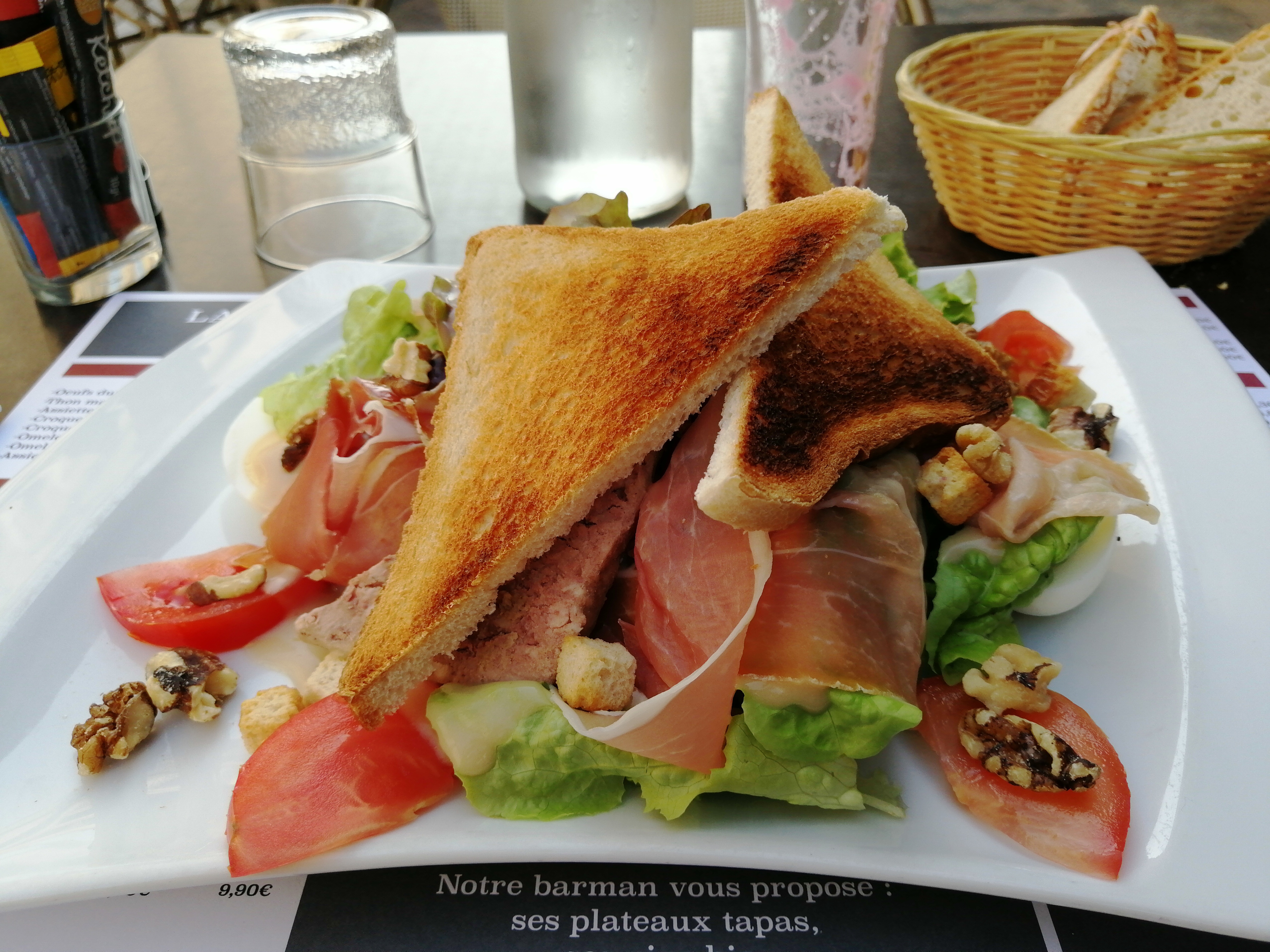 Une salade Ceasar avec de la salade verte fraiche et du poulet croustillant chaud comme il convient (ni trop, ni trop peu)…un pur délice. Certainement plus au calme en soirée qu’en journée. Accueil très agréable et service rapide ( à la limite un peu trop en soirée). Très bonne adresse.