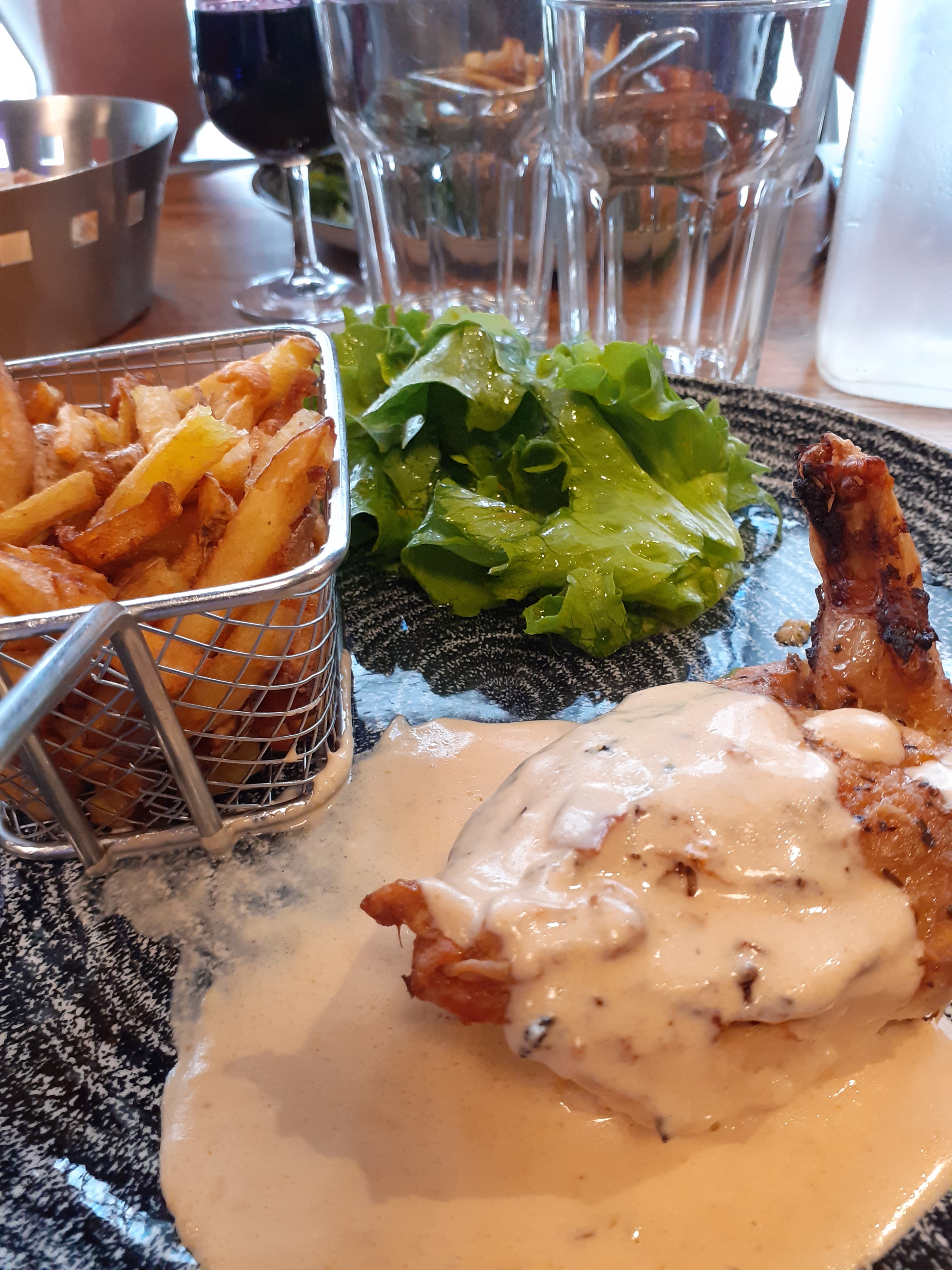 très bon restau. un service au top. un chef de salle super dynamique et sympa. des plats à la hauteur : salade de chevre chaud ou crevettes curry. suprême de poulet ou travers de porc et paris brest pour nous. je recommande ++++ il vaut mieux réserver par contre..