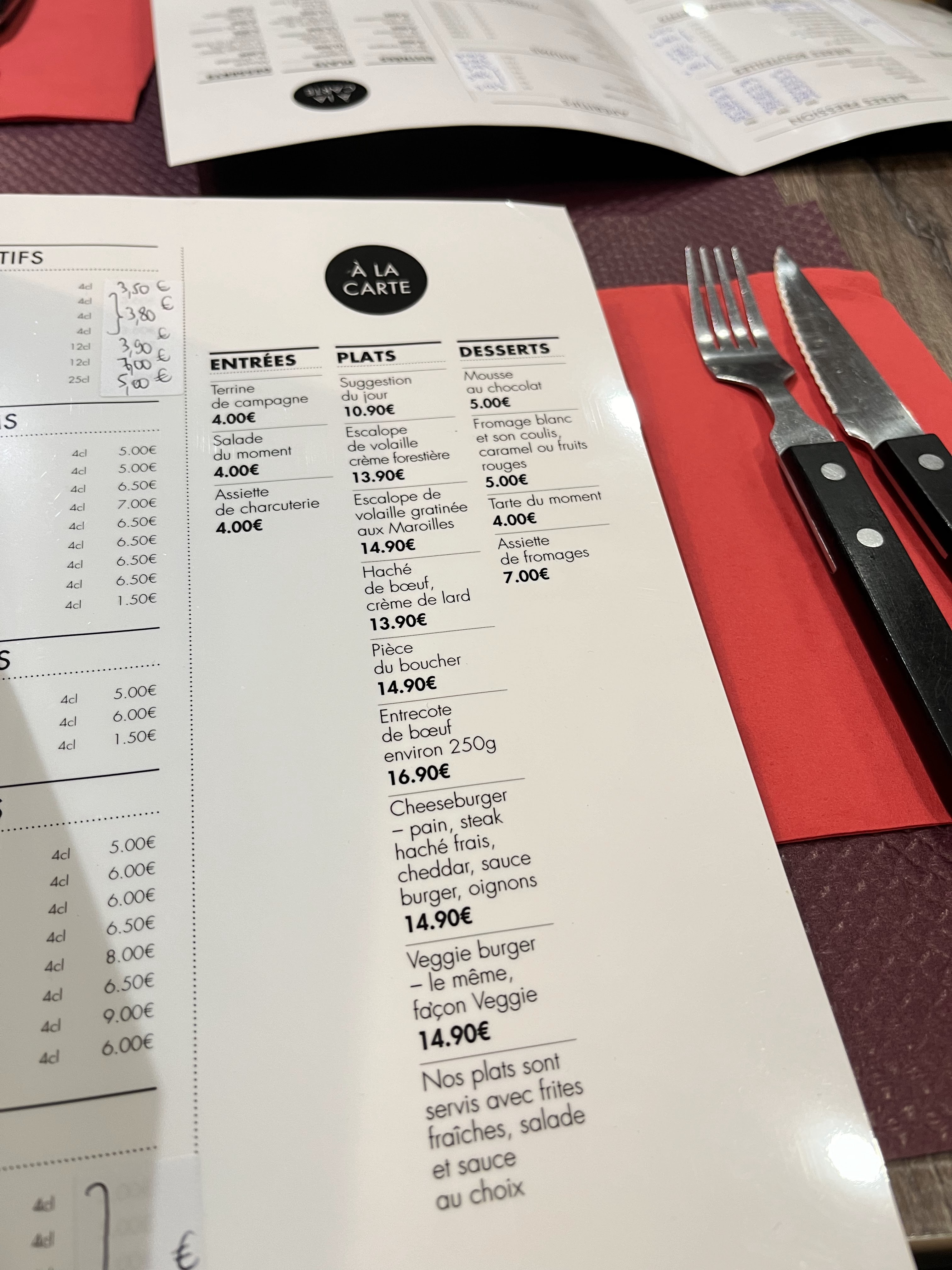 Excellent le cheeseburger steak haché de boucher œuf bacon fromage ah une vrai tuerie .planche campagnardebien garnie (jambon jambon sec paté mortadelle rosette bacon)et tout du vrai pas de sous vide parfait je conseil largement n'hésitez pas foncé