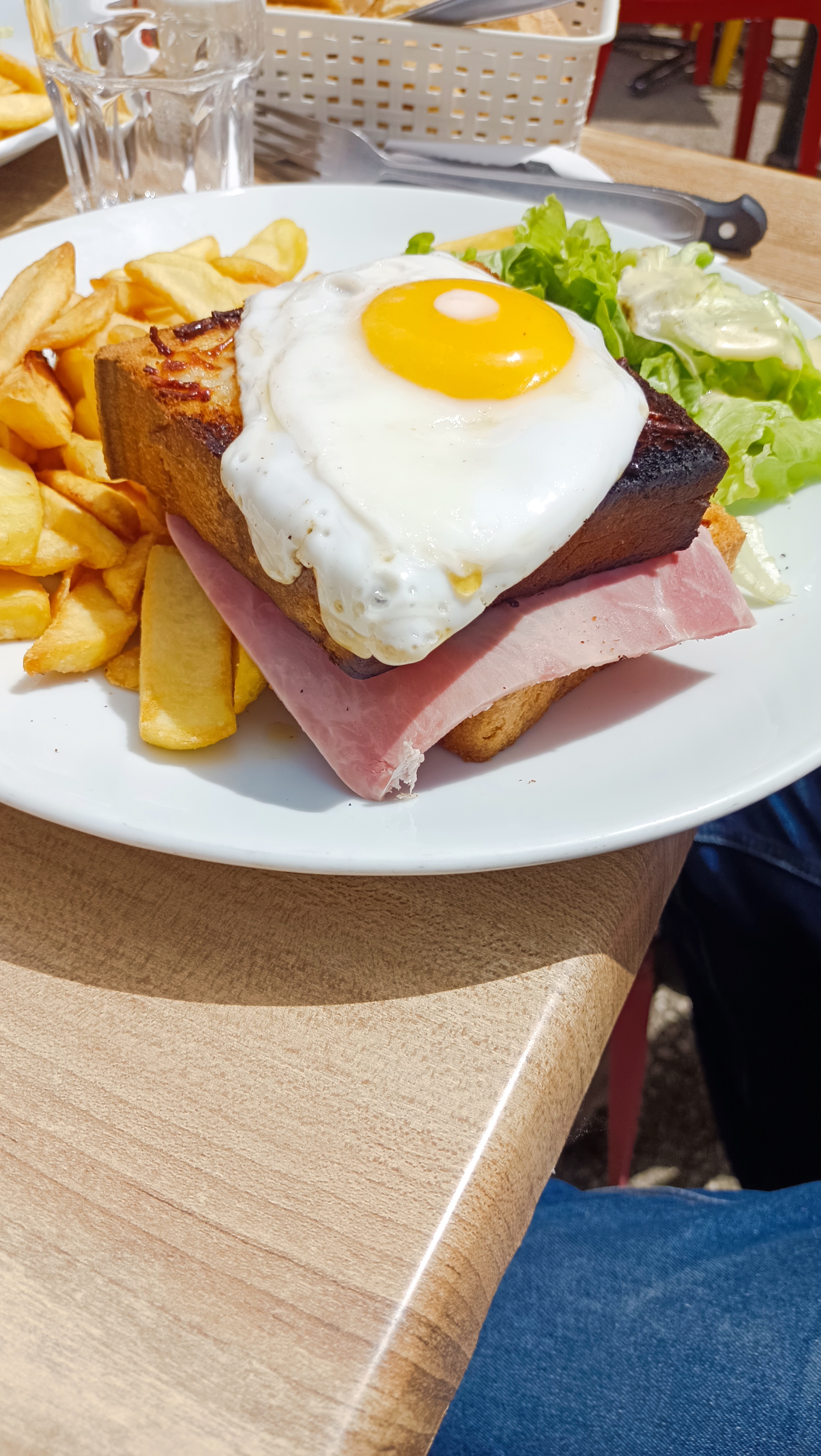 Déjeuner jeudi, sous la pluie ! Heureusement sous le parasol. Mauvaise compréhension de la commande. Du coup la formule c'est transformer en carte. Poire de boeuf excellente et fondante, servi avec des frites. Les desserts de la formule n'étant plus disponibles un geste commercial nous a était fait avec des desserts de la carte. Je recommande.