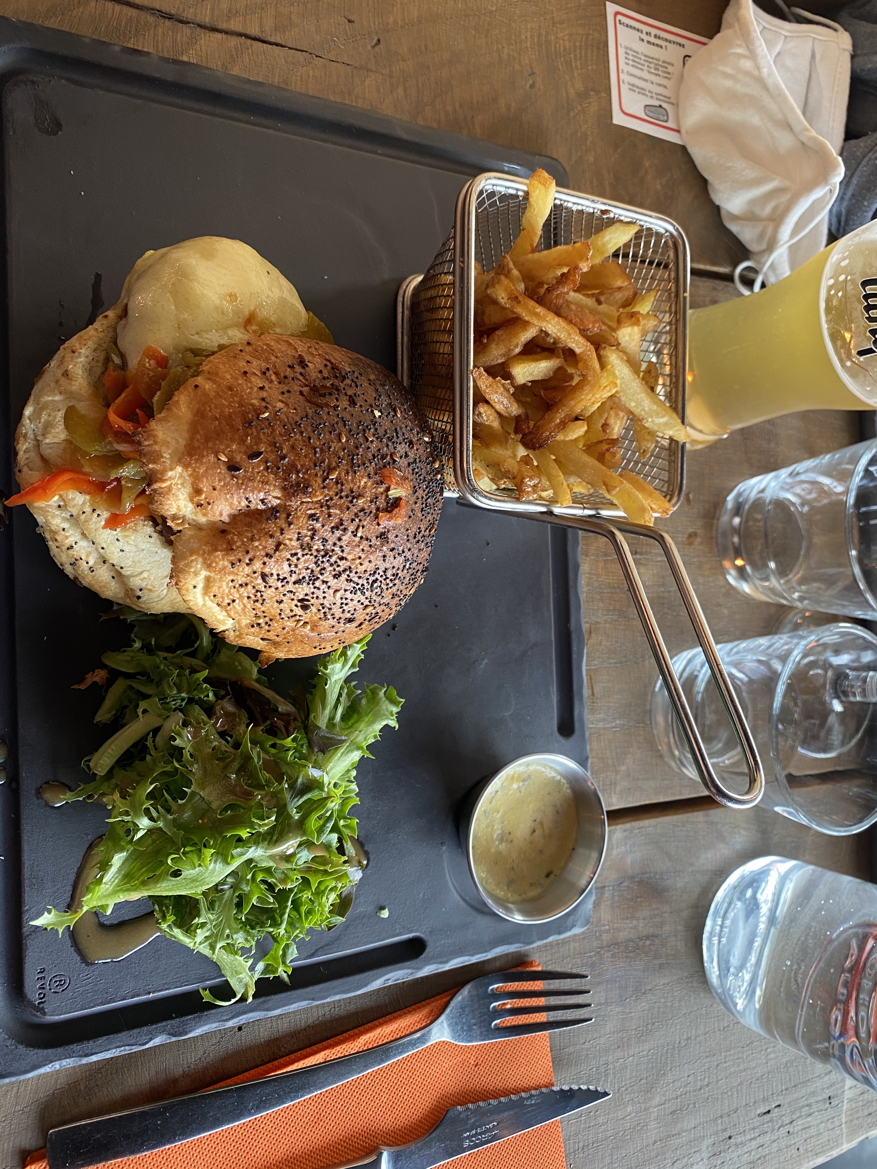 On y a très bien mangé, je ne m'attendais pas à ce que tout soit fait maison. Très bon burger, mais il y avait beaucoup trop de (très bonnes aussi) frites.