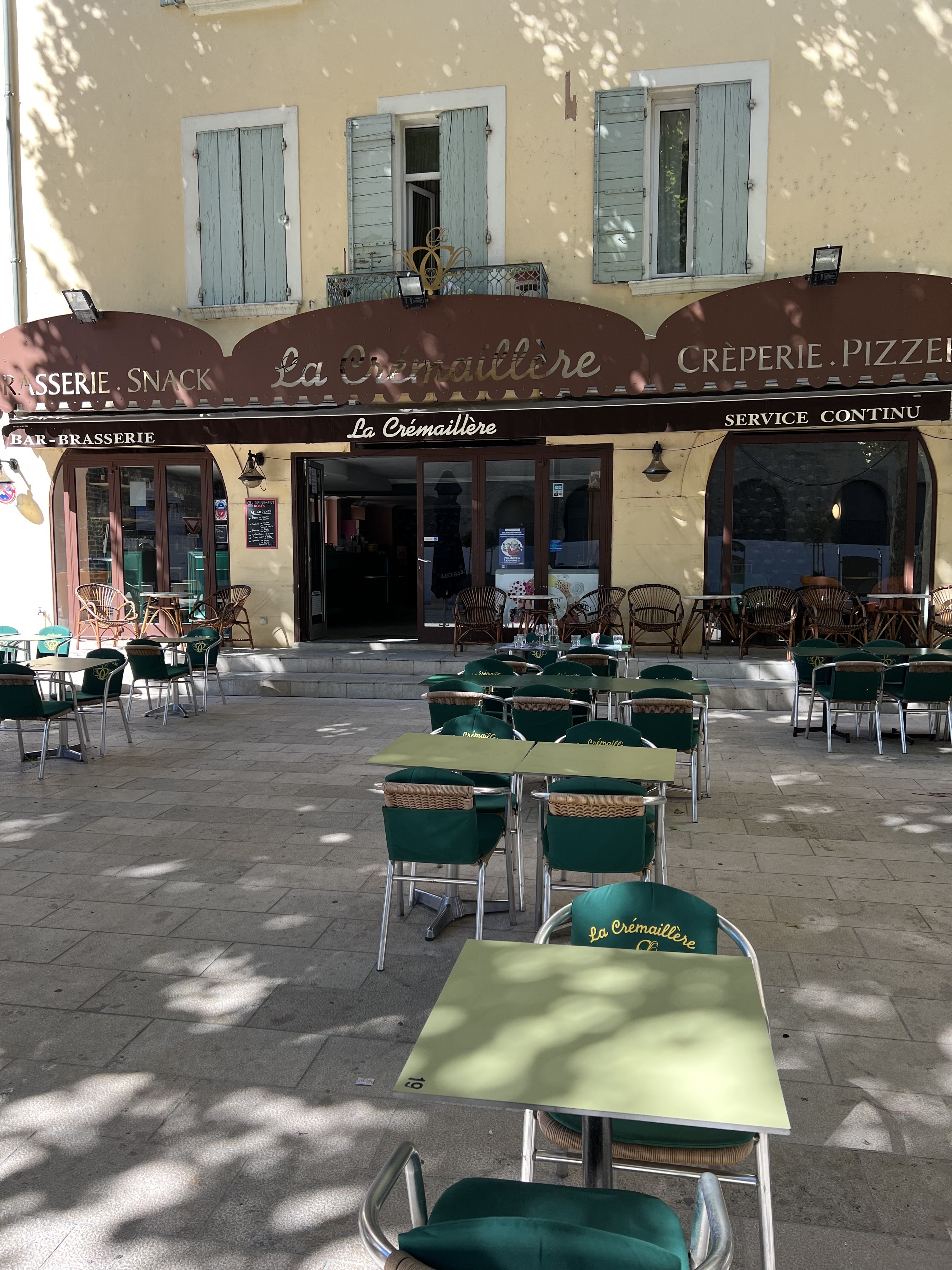 Ouvert en permanence, fait rare dans cette région, on y mange bien et on y sert un bon service. En plus d'être face au Théâtre Antique d'Orange, un lieu bien adapté aux touristes.