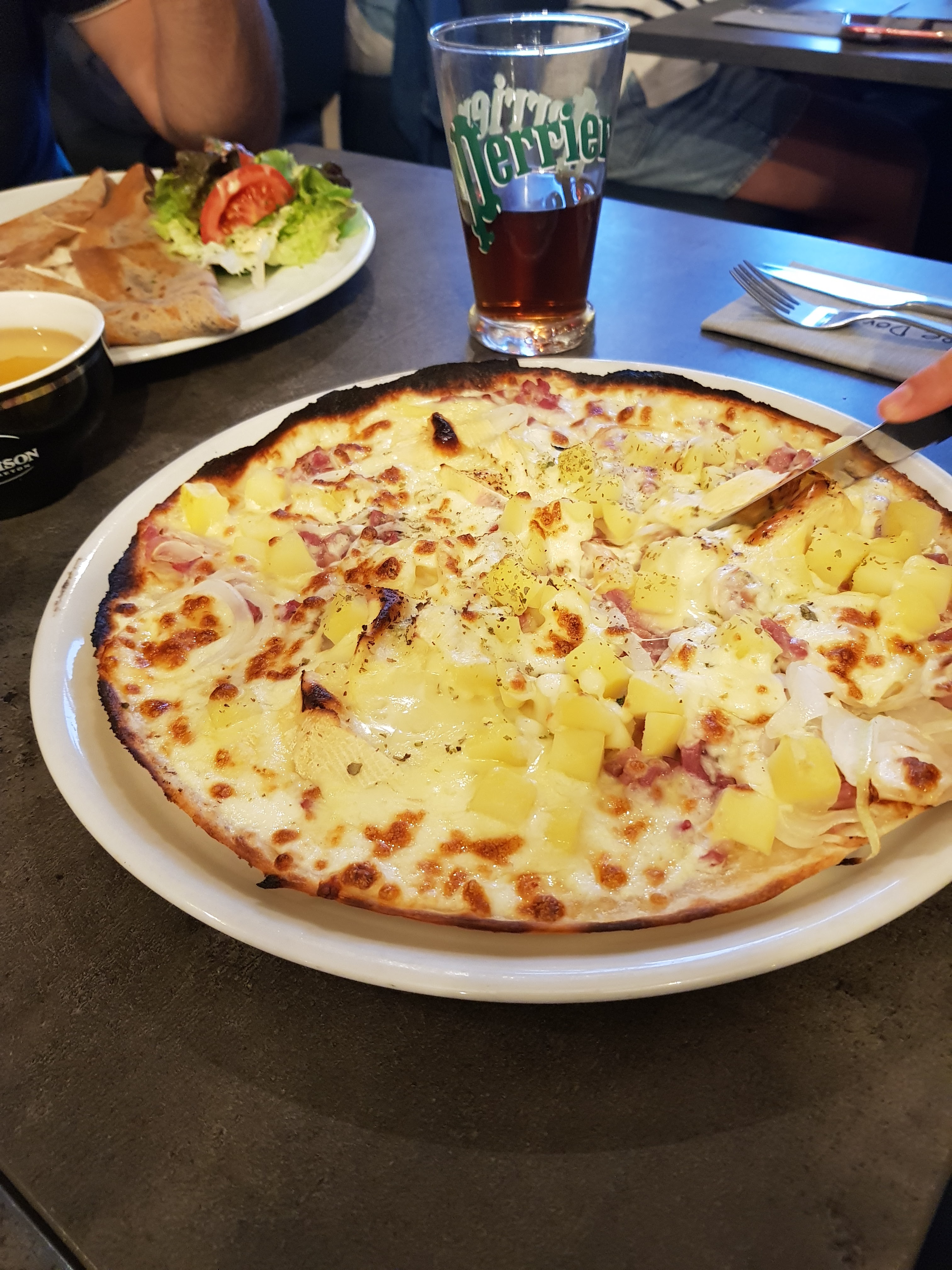 Une crêperie qui sert des galettes industrielles, arrivées dans l'assiette a peine chauffée avec en garniture des pommes de terre sous vide et une crème toute prête, je n'ai même pas fini mon plat je suis partie tellement c'était imangeable. La pizza de mon ami avait une pâte toute faite aussi, même pas dorée (type galette a fajitas).. je ne comprends pas les commentaires positifs, ou alors nous n'avons pas eu de chance ce soir. C'est la première fois que cela nous arrive dans un restaurant, de partir sans avoir mangé...