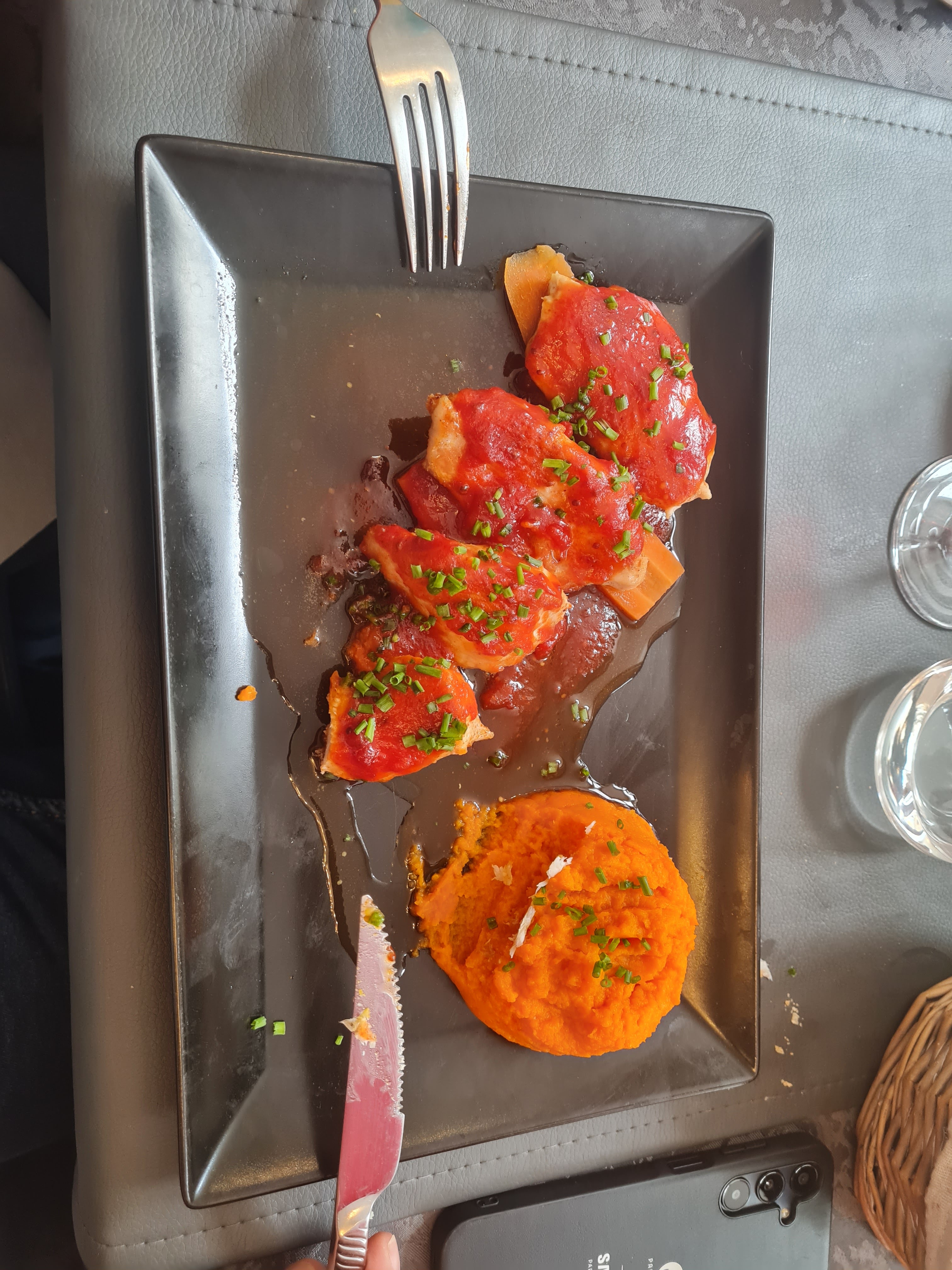 Très bon accueil. Le plat suprême de volaille et purée de patates douces était parfait. Le tiramisu bon mais un peu trop liquide et manque le goût de l'Amarétto. Le service nickel 👌👍
