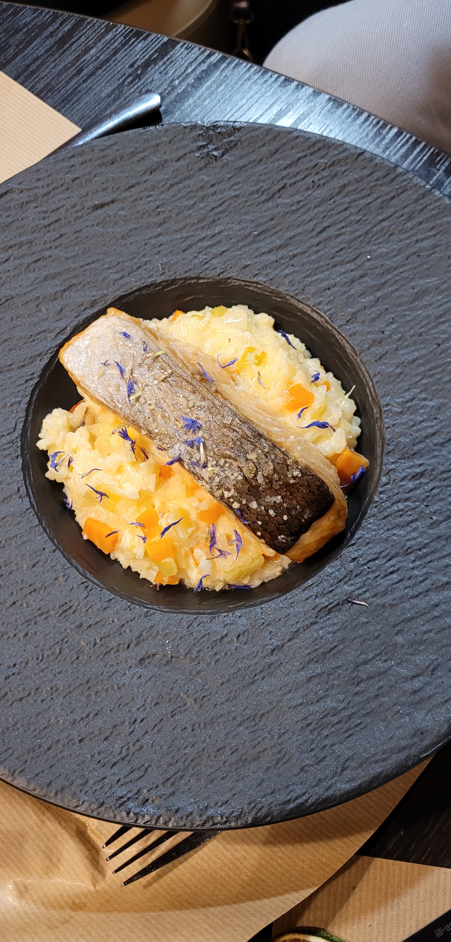 Ce n’est pas tout à fait attendu dans un bâtiment modulaire situé dans une zone commerciale. C'est en face d'un supermarché à deux voies. Le personnel était accueillant et s'est gentiment assuré que nous partions avant 20 heures pour nous enregistrer pour le ferry breton du soir. Pour la même raison, c'était bien que La Fabruk soit près du terminal des ferries de Cherbourg et ouvre à 18h30 et non à 19h comme la plupart des restaurants français. Bon spectacle.