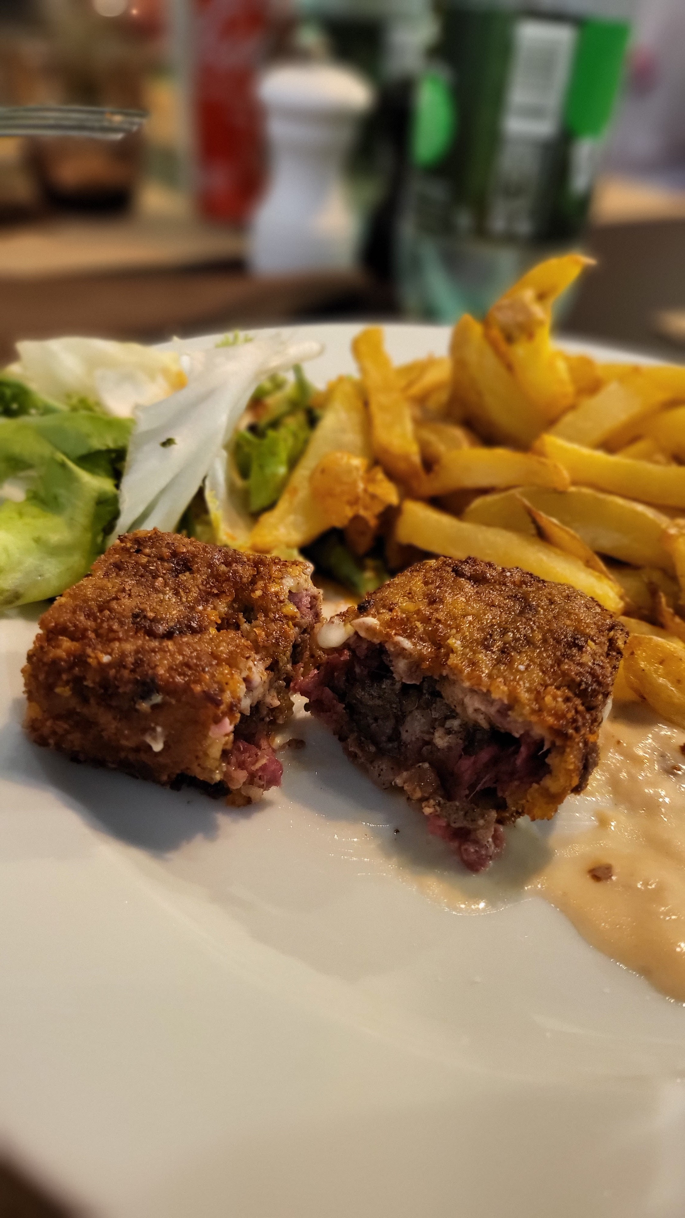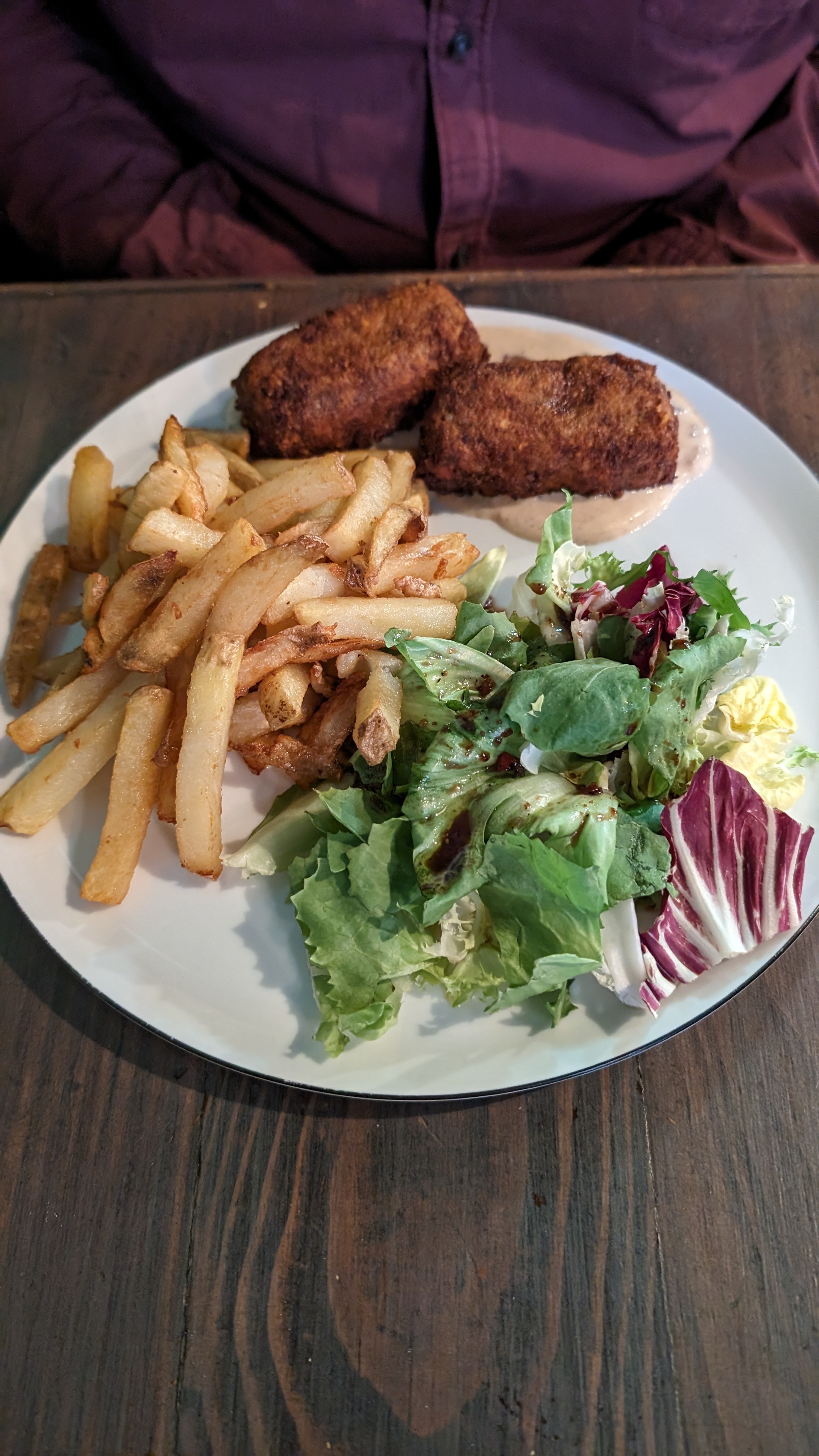 Bon mais vraiment cher par rapport aux quantités. Même les accompagnements (frites, salades) ne sont pas en grande quantité. Une sauce avec les cromesquis serait appréciée . La marinades est bonne. Malgré tout on peut trouver un bien meilleur rapport qualité/ quantité/ prix sur Bordeaux. C'est dommage car le cadre est plutôt agréable