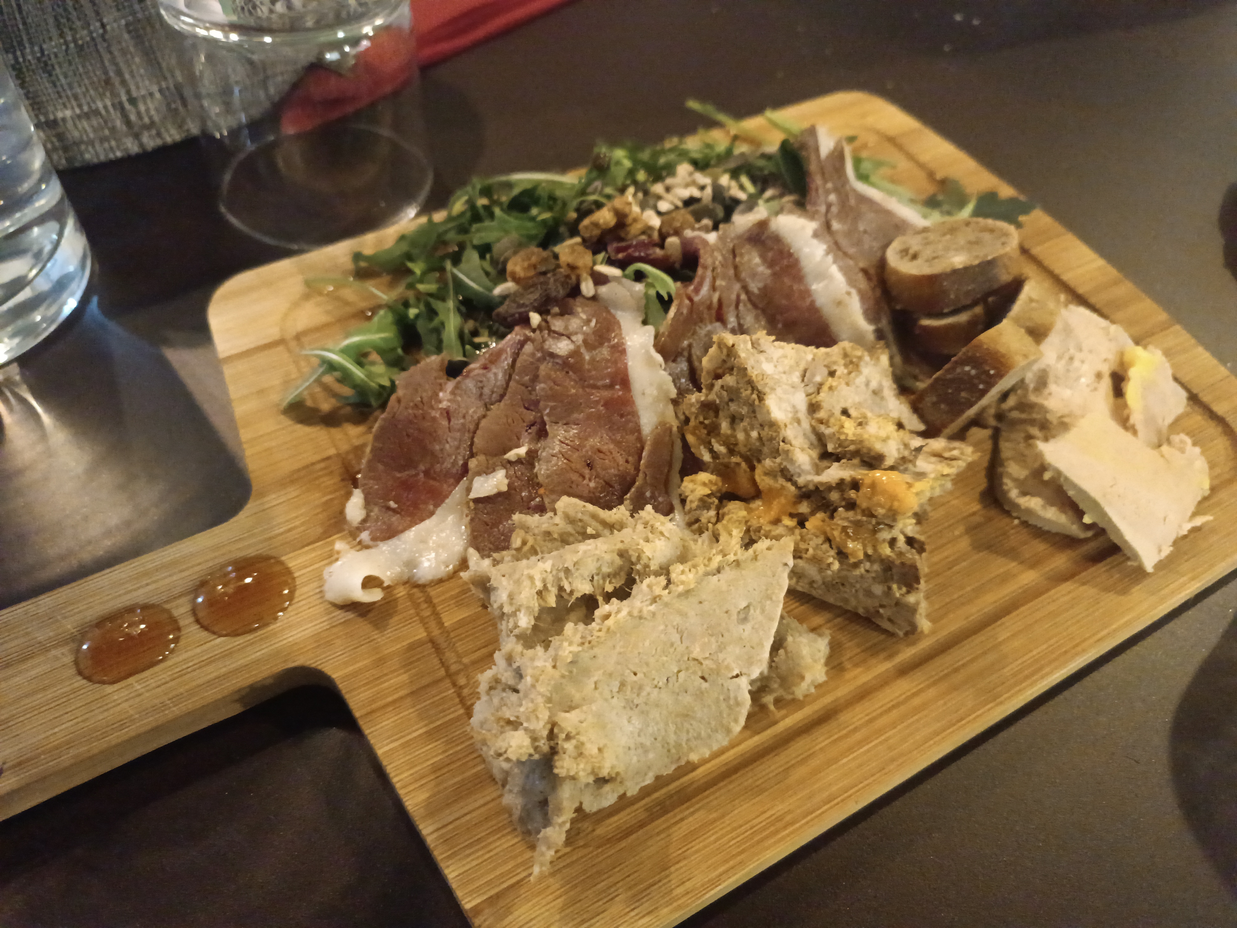 Du canard dans toutes ses formes,... Assez onéreux, mais sûrement le prix de la qualité du produit. Et c'est vraiment bon! A faire de temps en temps.