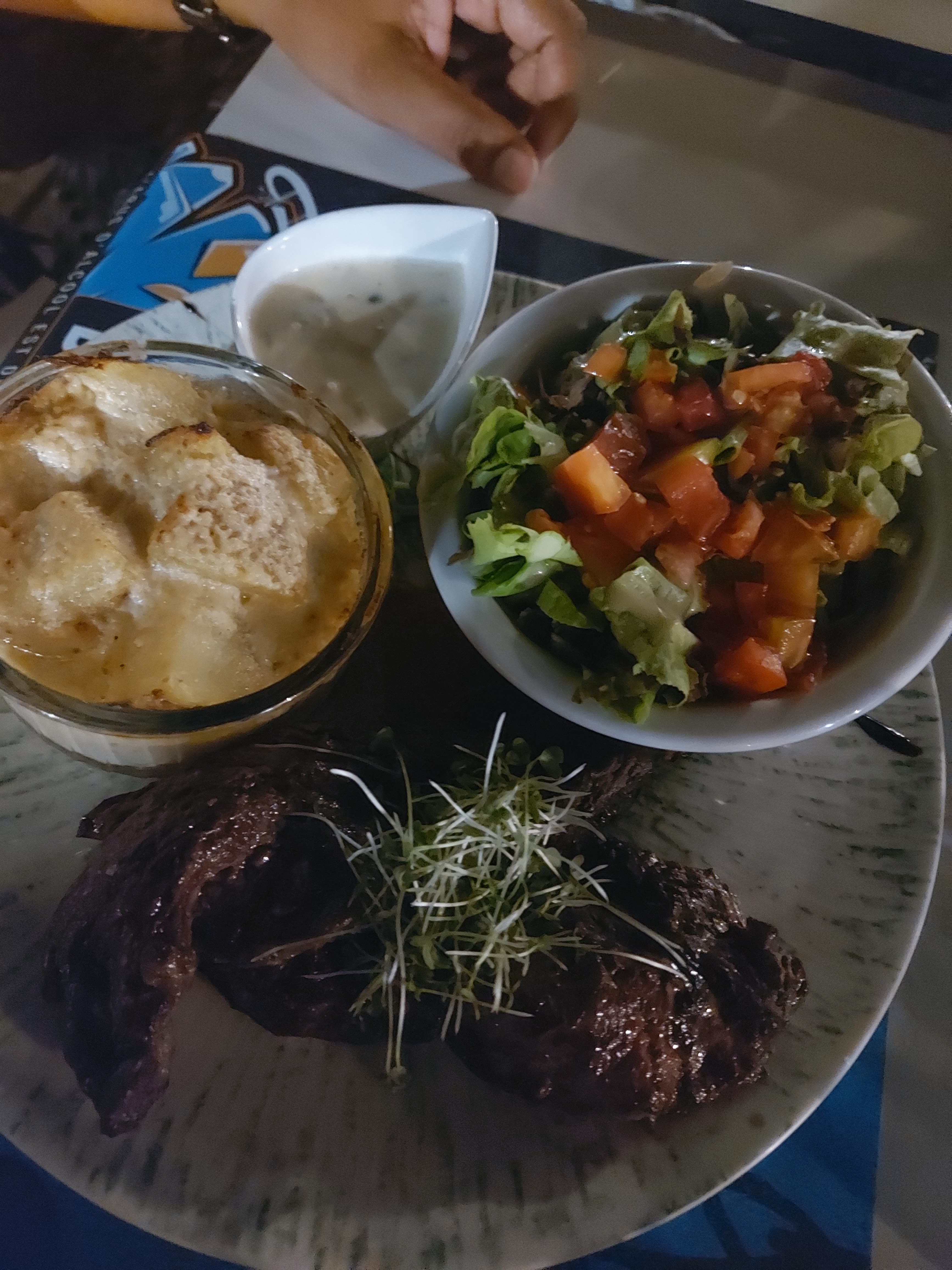 Une étoile pour la serveuse, Bonne sauce au poivre saupoudré de pec vaisselle de quoi se rincer la bouche. Salade tout droit sortie de l’iceberg, frites tout fraîches surgelé ainsi que les viandes; de quoi se rafraîchir, Ne pas etre difficile car tout en rupture, heureusement que la serveuse est drôle, Le Burger King est en face et à vue sur la mer :)