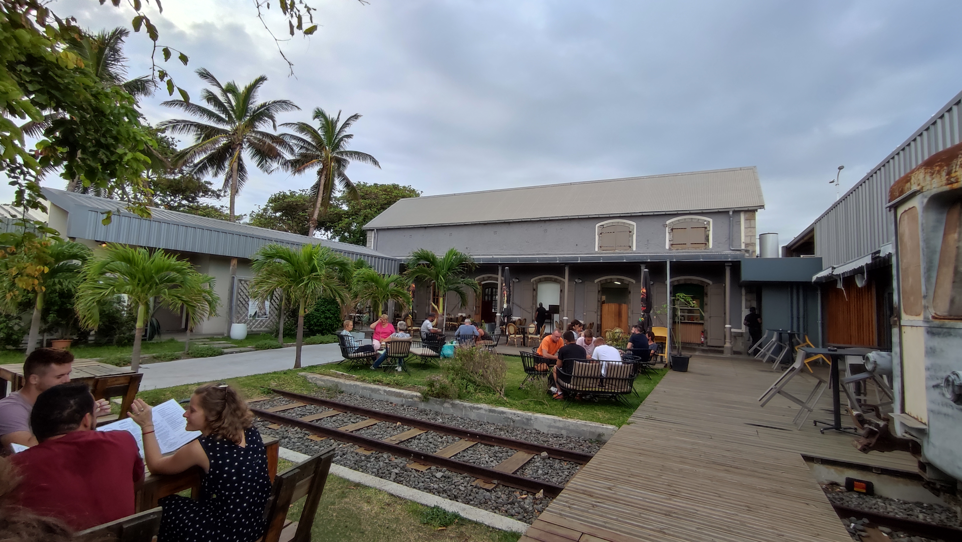 Un lieu mythique de St Pierre, avec une gare recomposée qui cache une belle terrasse intérieure et un wagon d’époque. Un personnel serviable et souriant. Une carte aux saveurs variées. Nous avons bien mangé avec nos amis. Je recommande!