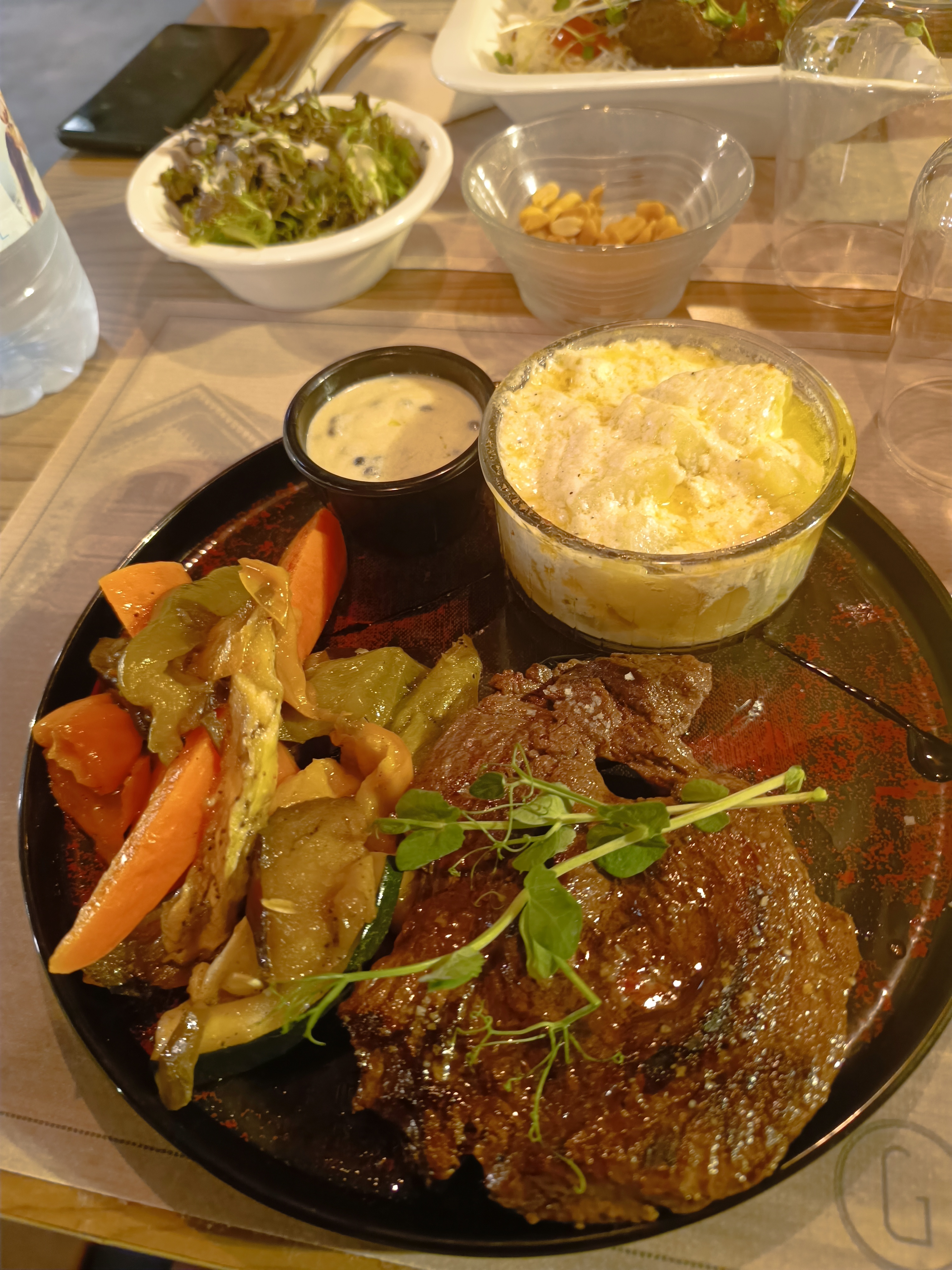Venu il y a 1 ans le repas était bon, grosse déception ce jour, pas de goût pour le plat et les sauces, sauce roquefort et jus de romarin sans saveur, poêlée de legumes sans saveur, on ne reconnait même pas de quel legume il s'agit, souris d'agneau sèche. Ne vaut pas son prix.