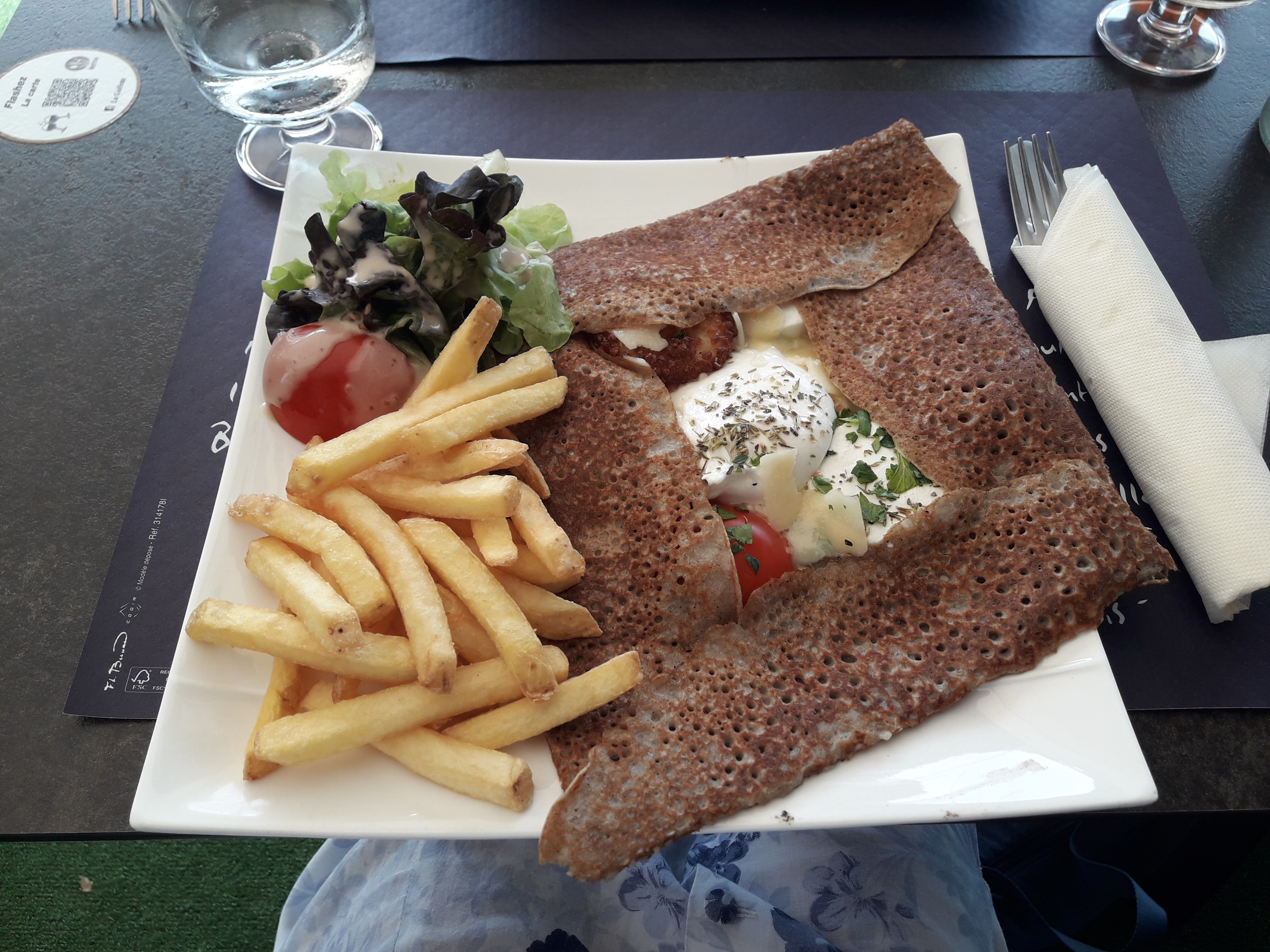 Très bon accueil. Très bon rapport qualité prix. Une crêpe généreuse au saumon crème fraîche ciboulette accompagné de salade et frites pas maison mais vraiment correctes. Simple decontracte. A refaire.