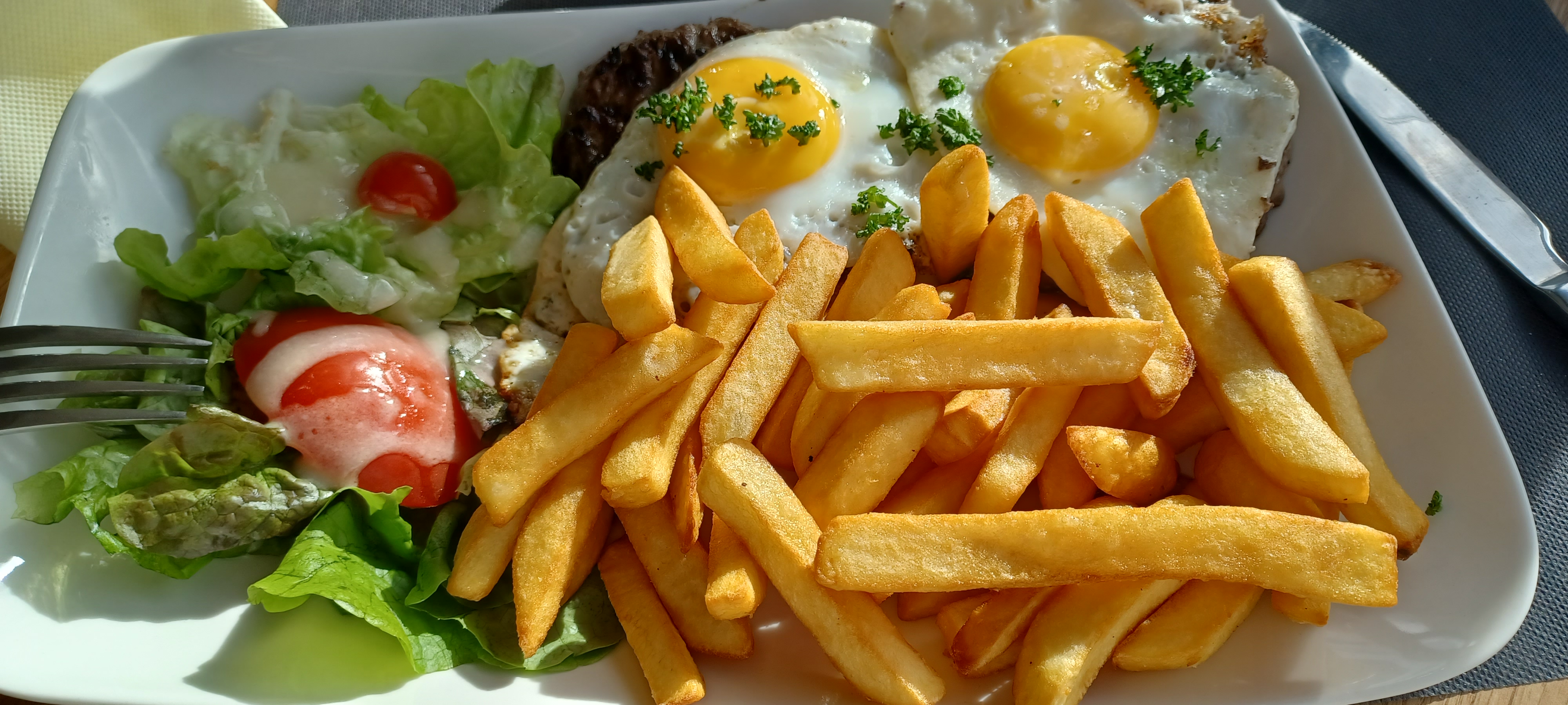 Accueil agréable calme avec se beau soleil moule frite un humburger poulet et menu galette et menu enfant super bon vraiment a un prix très raisonnable