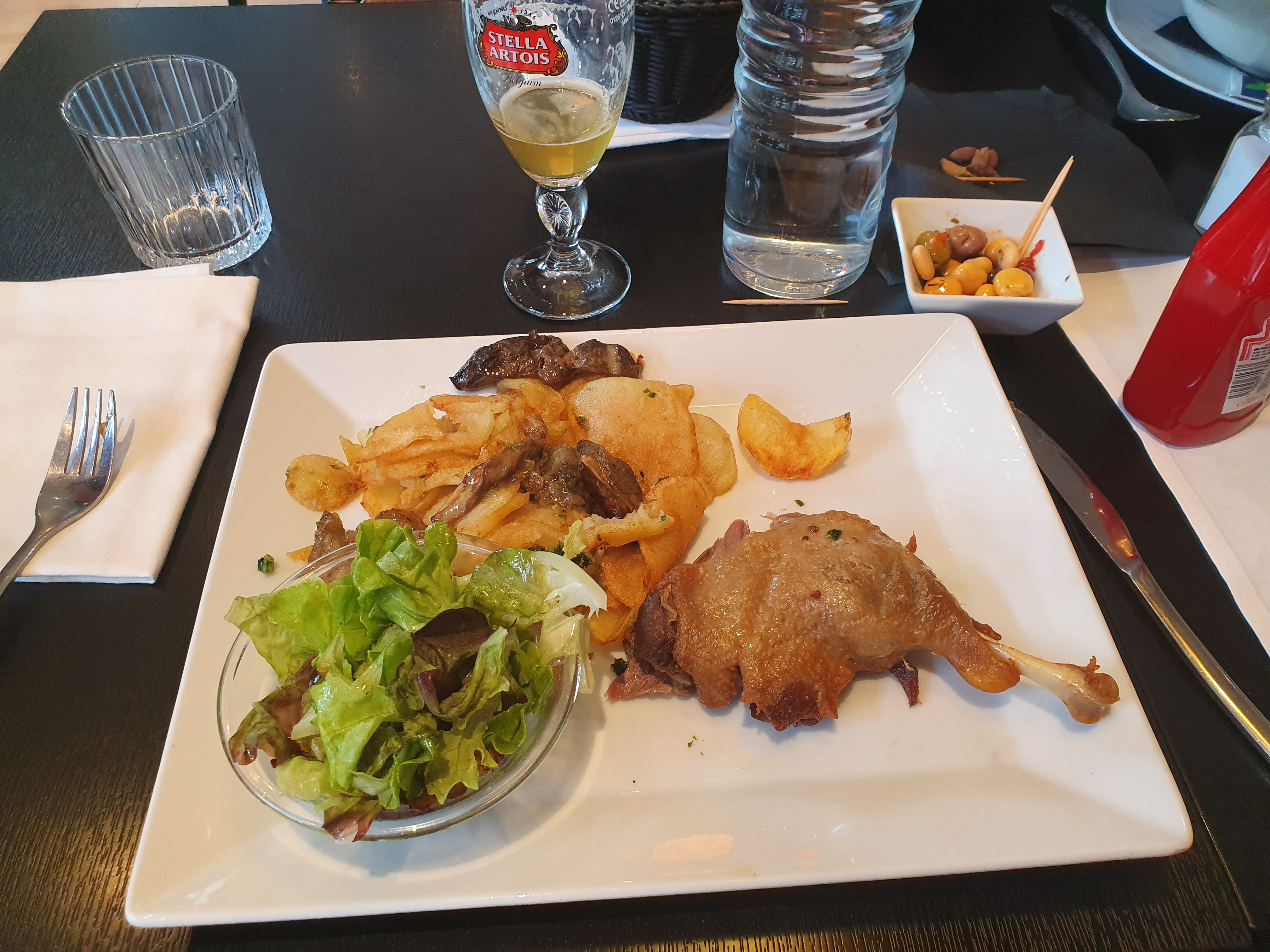 Cuisse de canard excellente, peut-être un peu trop d'ail dans les pommes de terre. Service agréable et déco sympathique.