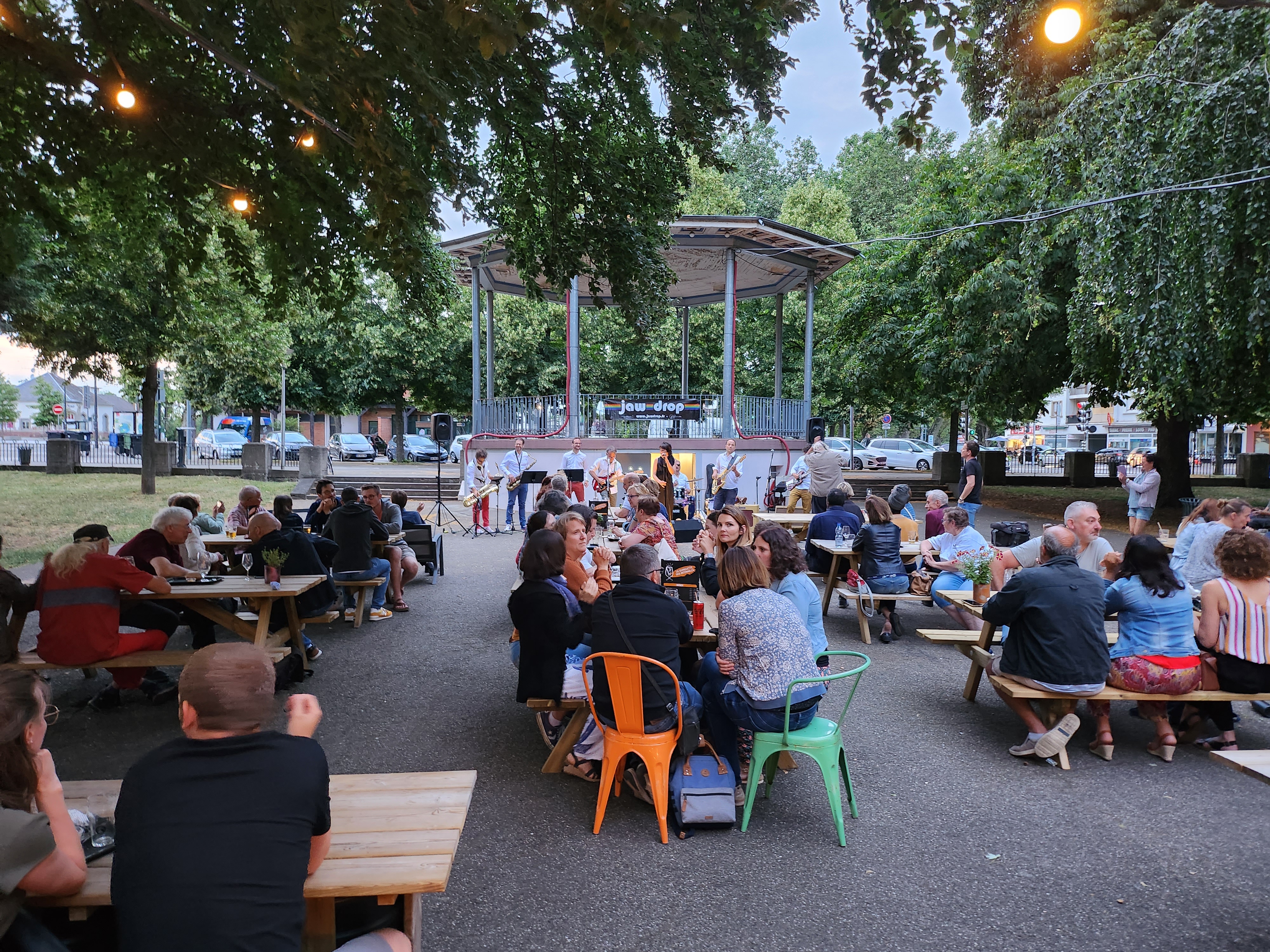 Nous y étions pour la soirée Tartes flambées animées par les Trouble Notes. Guinguette située sous les arbres au milieu d'un parc. Nous avons passé un excellent moment !!