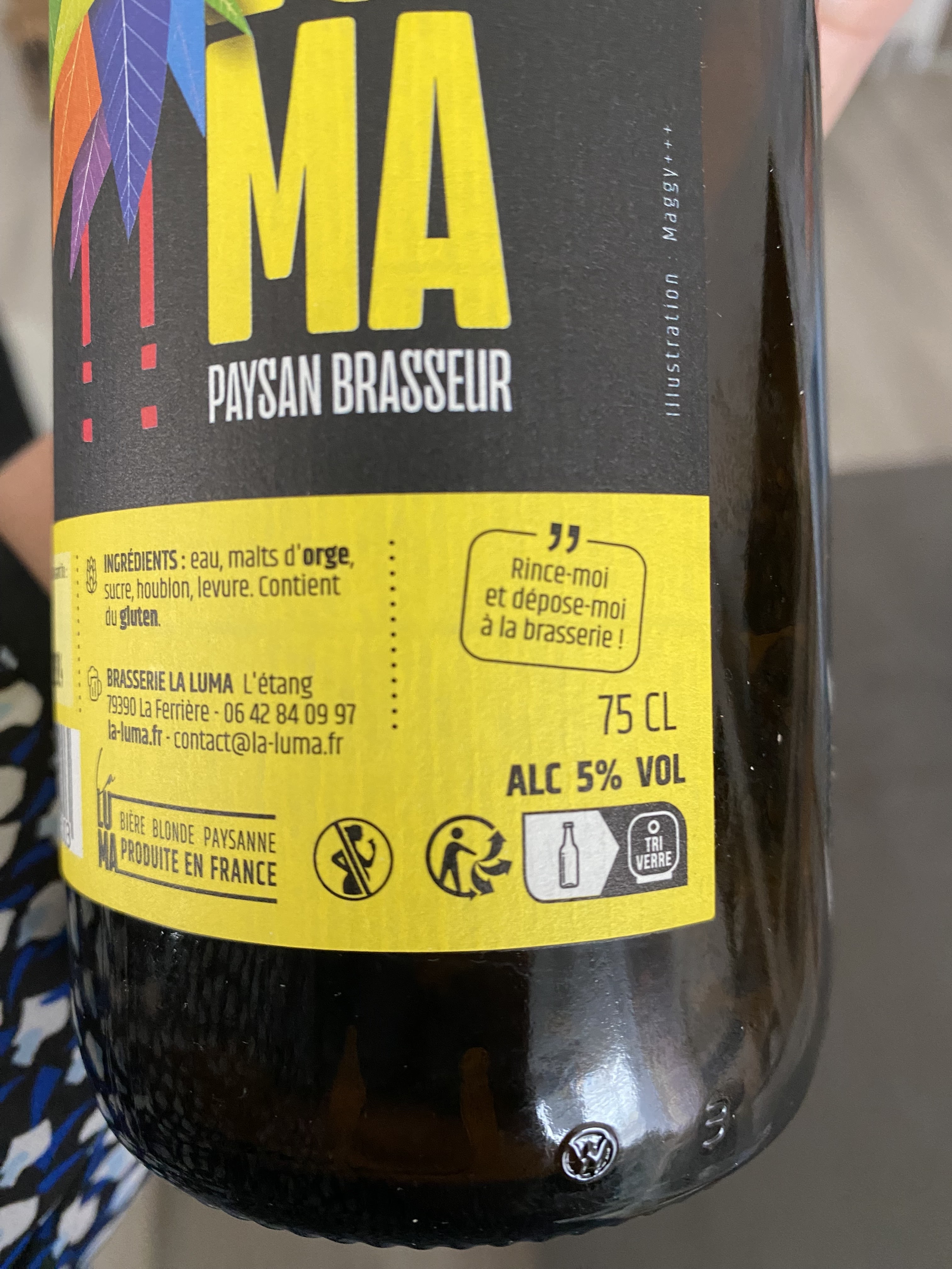 J’ai acheté cette bière en vacances dans la région du Poitou ! Je vous la conseille elle est excellente ! Pas très forte 5%, pas amère et l’étiquette est très sympa ! En plus il recycle les bouteilles 👍🏻 Je recommande🍻