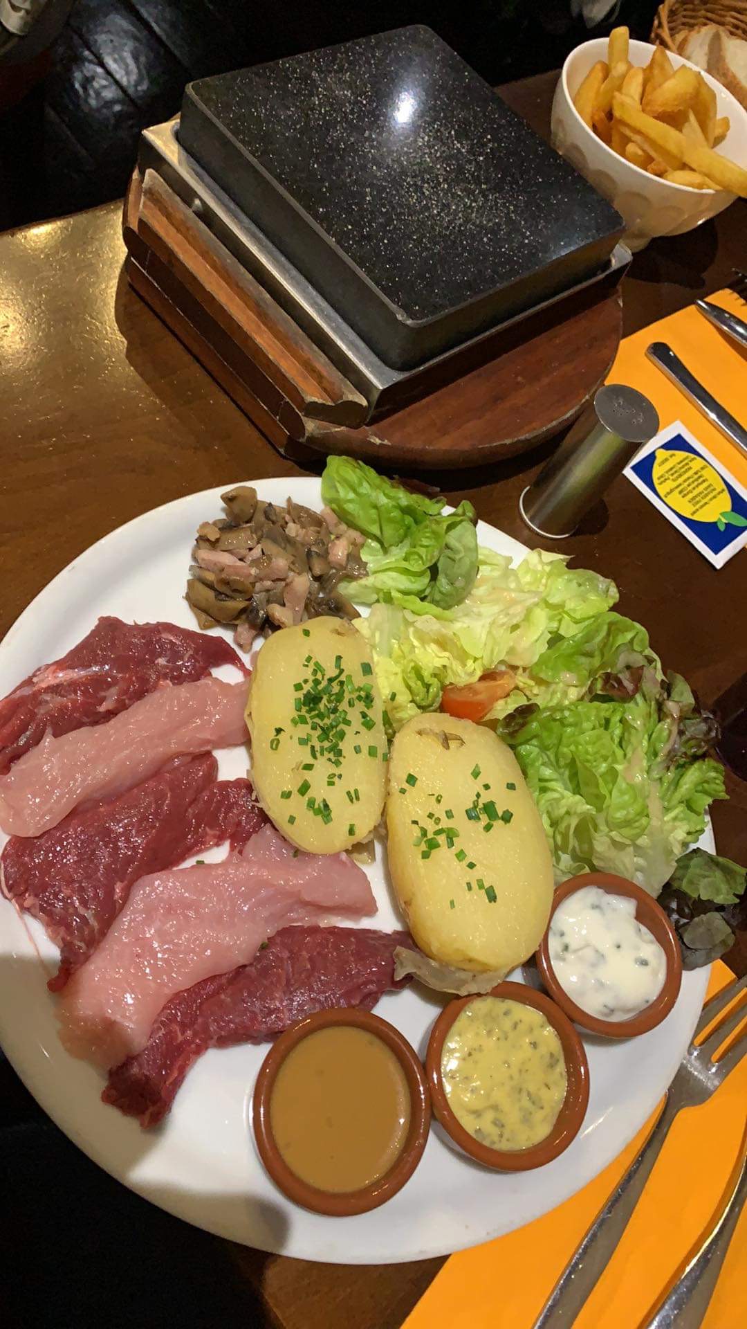 Très bonne ambiance ,resto rempli très vite ,et servis assez rapidement. Personnel très gentil et amical. Perso je n'ai pas trop aimé le fait d'avoir la viande crue avec les frites et la salade , j'aurais préféré que la viande soit à part. Mais c'était très bon!