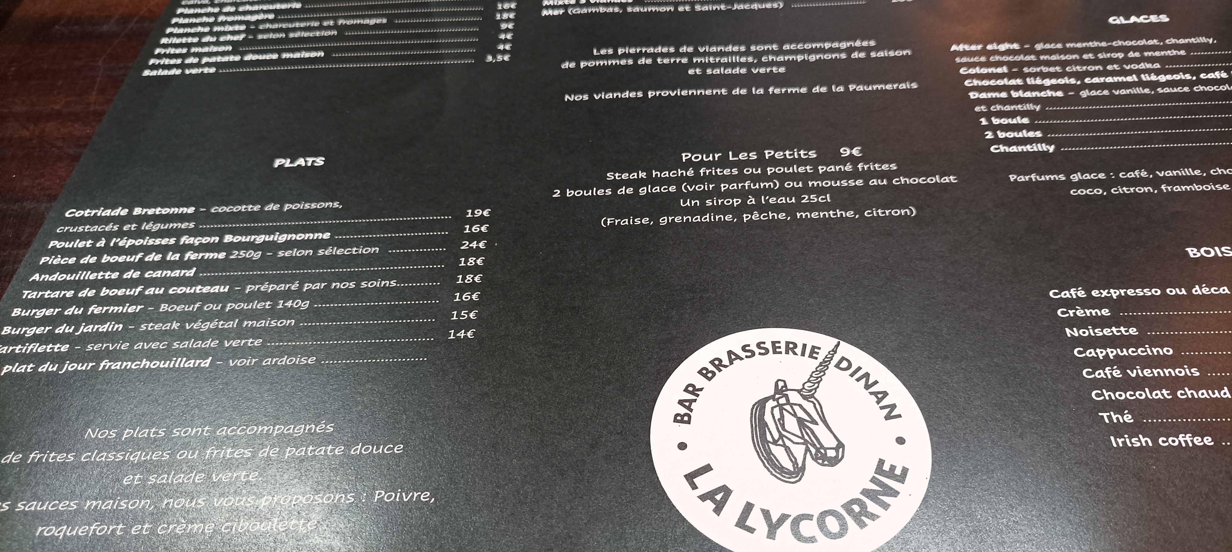 Seul point négatif le Barman sert du rhum Réunionnais. Qui fait ça ? Pour avoir essayé presque toute la carte, du burger boeuf à la pierrade XL, on y mange très bien. Que ça soit par la qualité des produits ou celle du service vous ne serez pas déçu de cette étape si vous passez par Dinan. En tant que jeune parents nous sommes aussi heureux de retrouver un espace pour changer notre bébé. Merci à Inès et Romain !