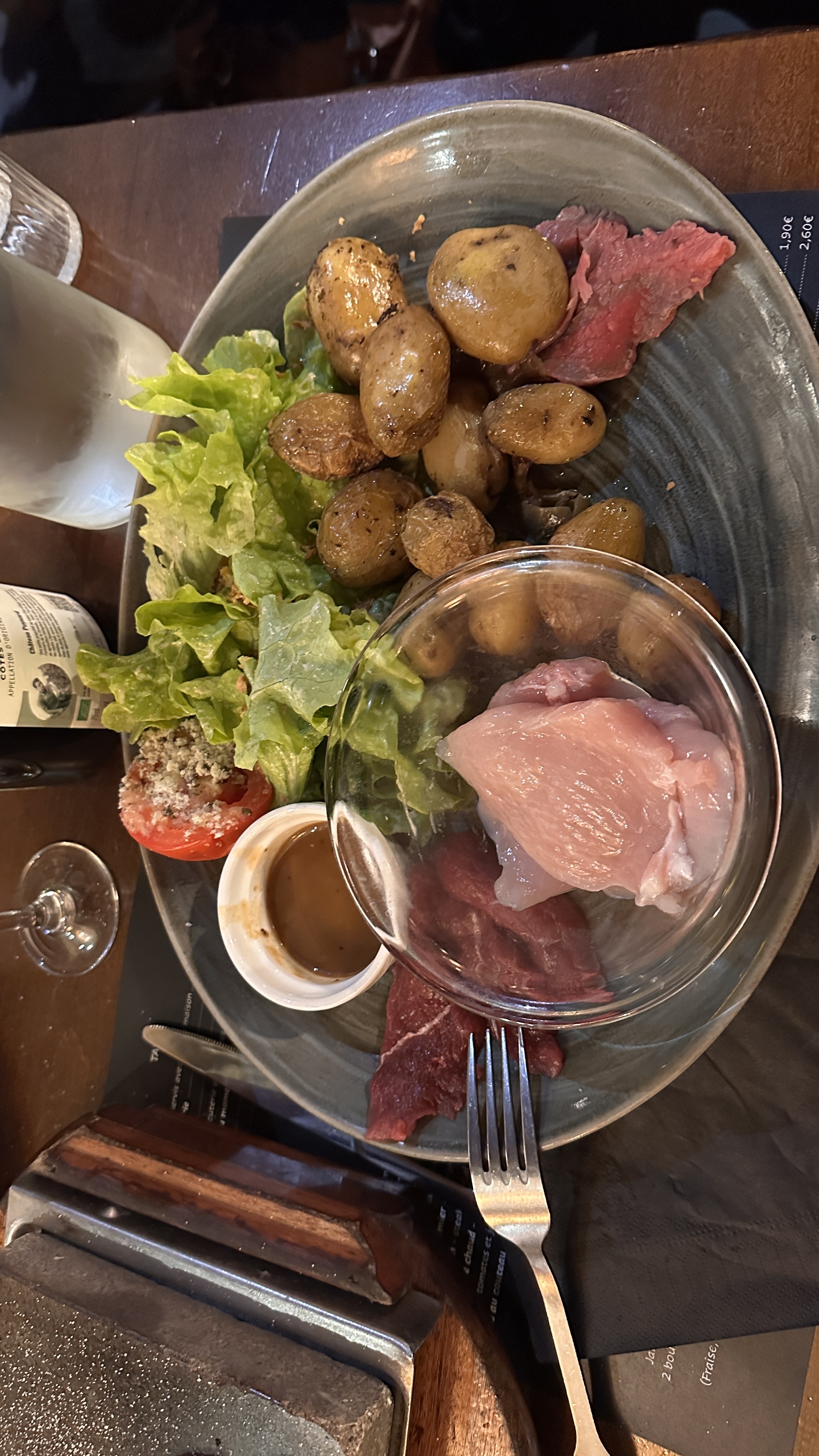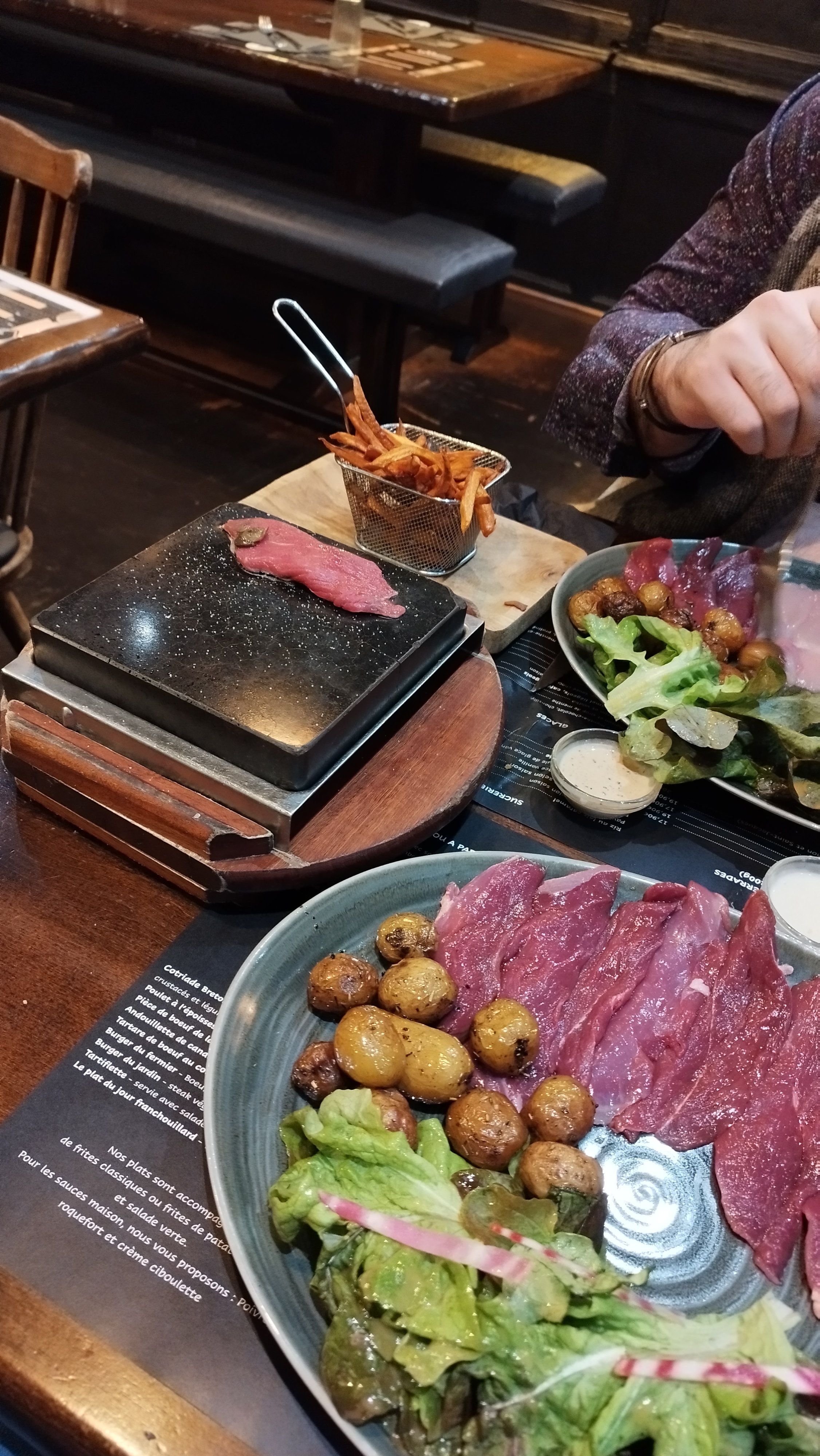 Bonjour lecteur, le service du midi pour un weekend a été ultra expéditif, l'apéro arrive vite mais le plat aussi, donc pas le temps de boire 3 gorgées et de discuter tranquillement... La pierre de cuisson arrive et elle est juste chaude nous dit la serveuse! alors on se dépêche de tout faire cuire, pas de pain, pas d'eau ou de vin, rien de proposé, dommage. assiette de la mer et 3 viande c'est limite en quantité même pour des petits mangeurs et la qualité est vraiment moyenne, on est loin de faire wow! Jamais on nous a proposé de réchauffer la pierre... Ne venez vraiment pas ici pour un événement particulier en couple. Quand on paye un restaurant on aime venir pour manger et être sevi, c'est dommage de rater ces 2 fondamentaux, on n'aura même pas voulu essayer le dessert. La pour le même prix autant rester à la maison, prendre Monnier comme traiteur et Marcel en dessert. Je n'attends pas de réponse de votre part mais seulement de prendre en compte la critique pour évoluer. PS, seul le cuistot a la fin de notre service avait l'air sympa et attentionné mais il ne peut pas tout faire! .