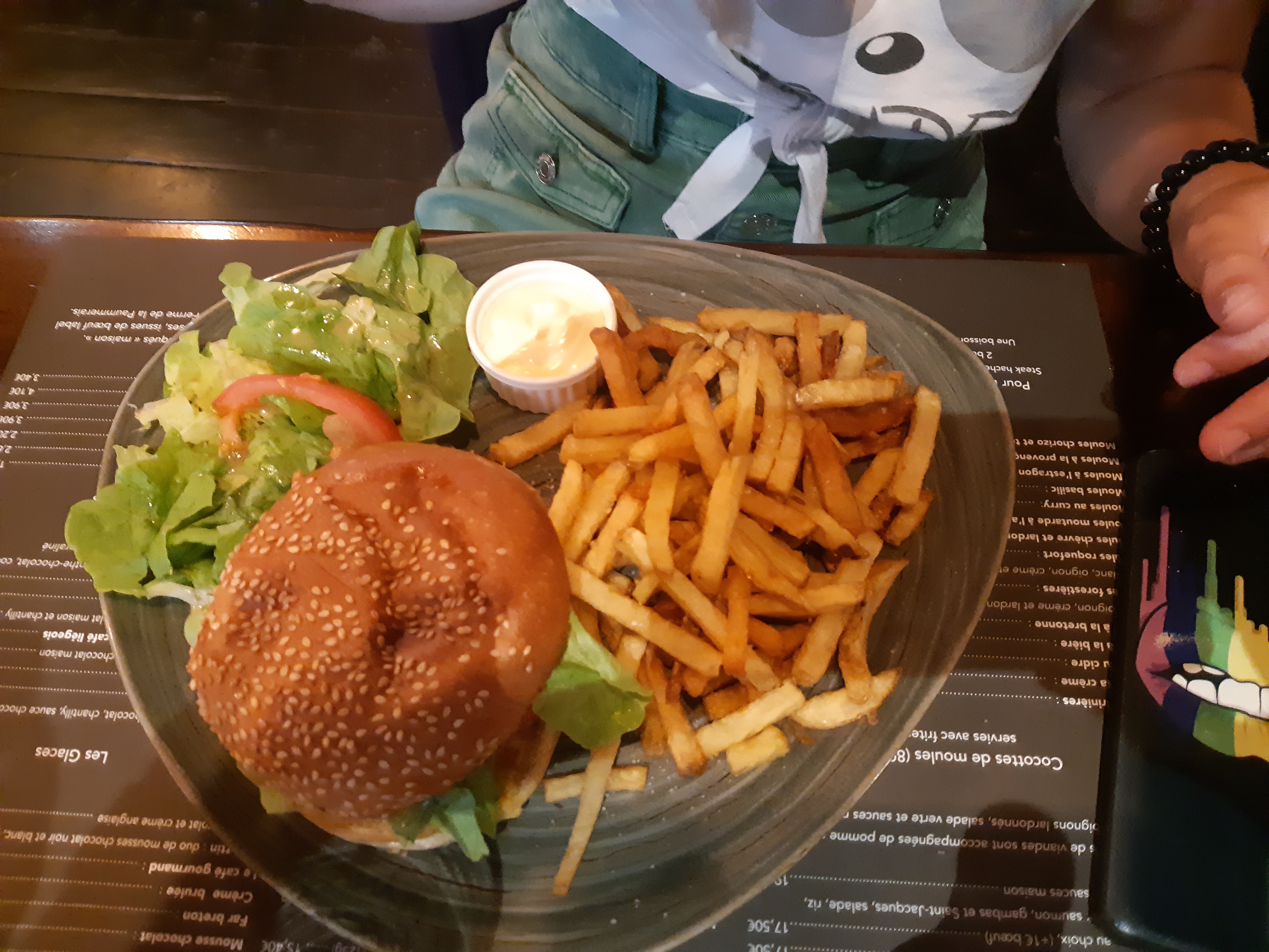 Je me suis fiée aux bons avis et très déçue. Longue attente avant d'être servie, hamburger végétarien sans saveur pain de mie qui s emiette quasi pas de fromage frites petites cassées et bof tout cela pas chaud ...bref trop cher pour ce que c'est...Après mon signalement cela devrait être revu, à voir.
