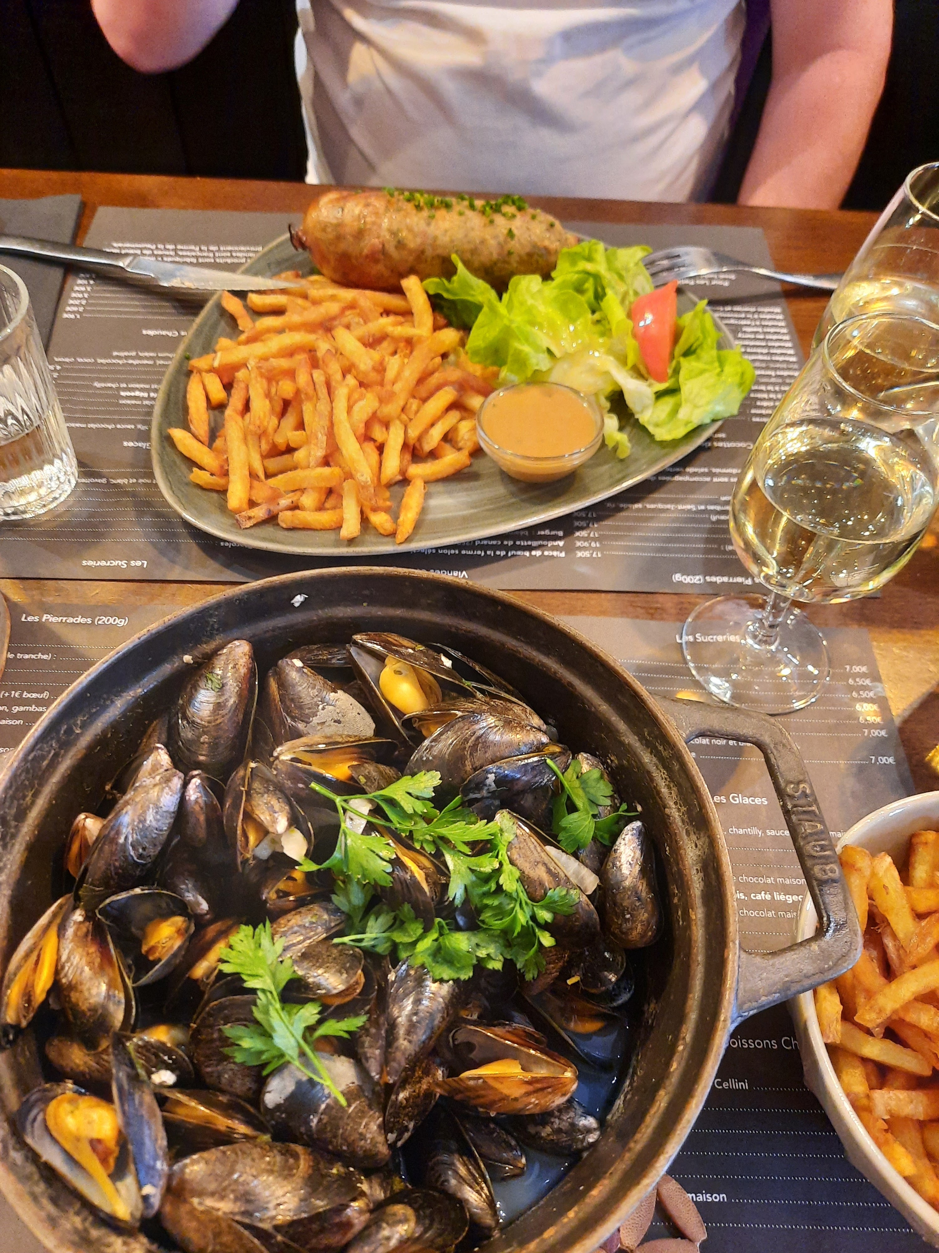 Nous avons déjeuné ce midi des moules frites (forestière et roquefort). Les frites sont faites maison. Les moules sont vraiment bonnes. Nous recommandons a 100% La dame blanche en dessert et également super bonne.