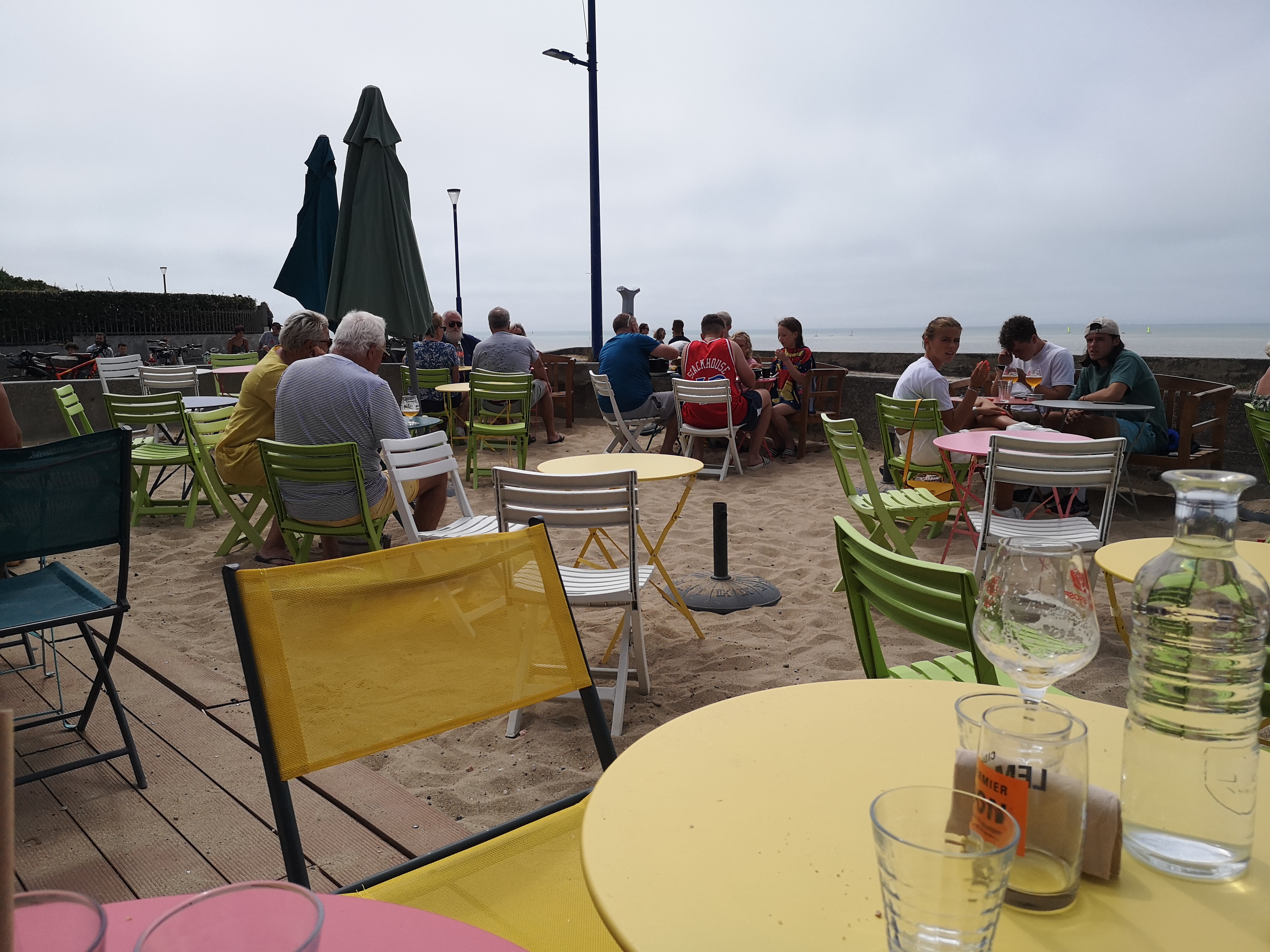 On adore le restaurant et sa vue sur mer à perte de vue. A marée basse les chars à voile prennent possession de la longue et majestueuse place de leurs voilent colorés. A marée haute les catamarans sont de la partie et jouent dans la mer. A table le restaurant offre un savoureux burger Normand et d autres plaisirs. Le service est souriant et fluide. Les pieds dans le sable c'est très sympa....