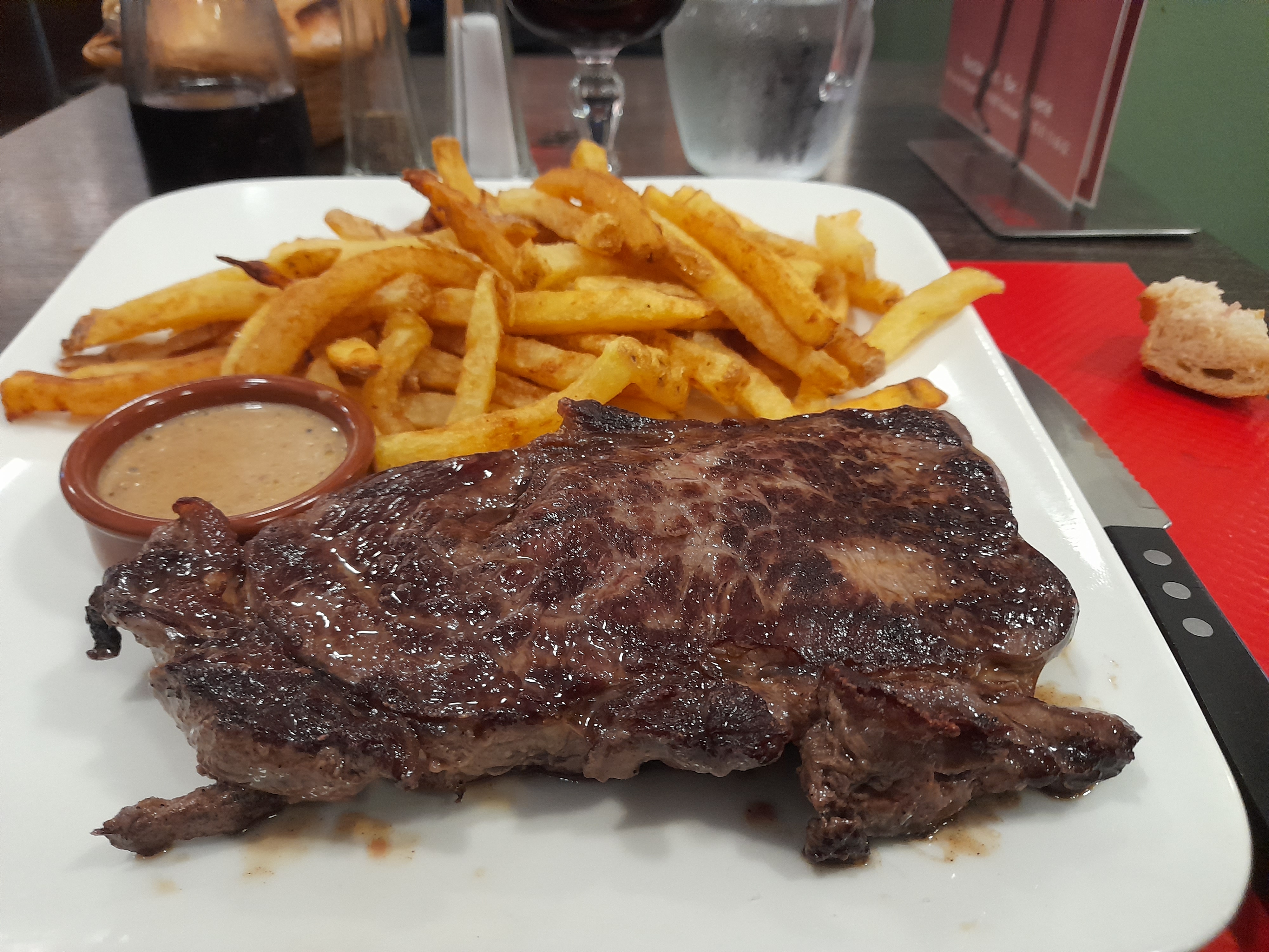 Entrecôte 300gr frites servie en 15 min un samedi soir, pas de complications, armagnac bien dosé : la brasserie comme je l'aime.