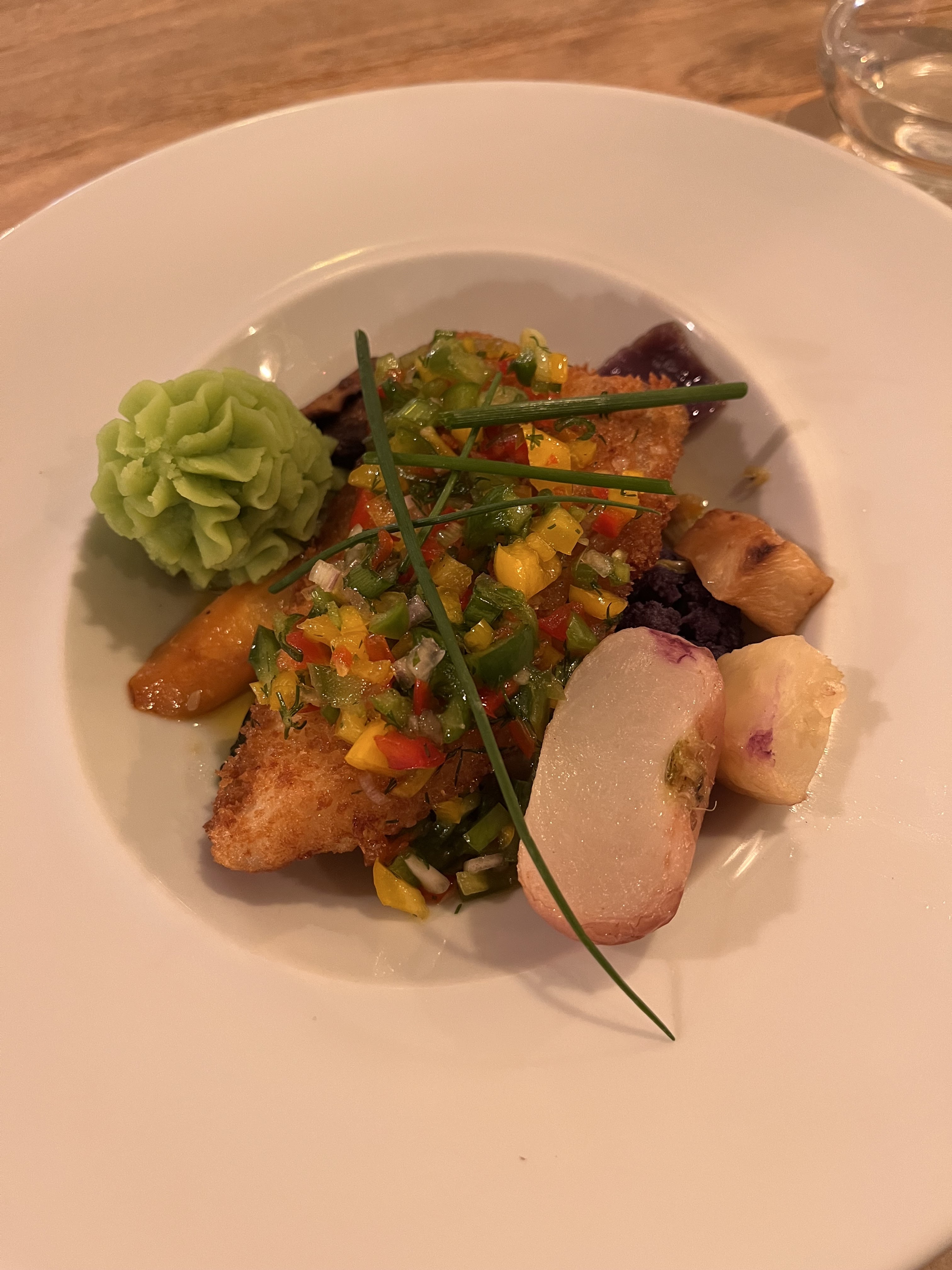 On s'est régalée. D'excellents produits bien cuisinés des saveurs au rendez-vous. St Jacques un peu cuite à mon goût mais ça c'est mon goût perso, (je les mangent juste cuite pas au goût de tous) Merci au cuisinier de mettre autant de passion dans leurs préparations. Les desserts sont tout autant excellents, pour moi c'était le citron 🍋 j'avais peur à l'acidité. Mais non l'équilibre est juste parfait.
