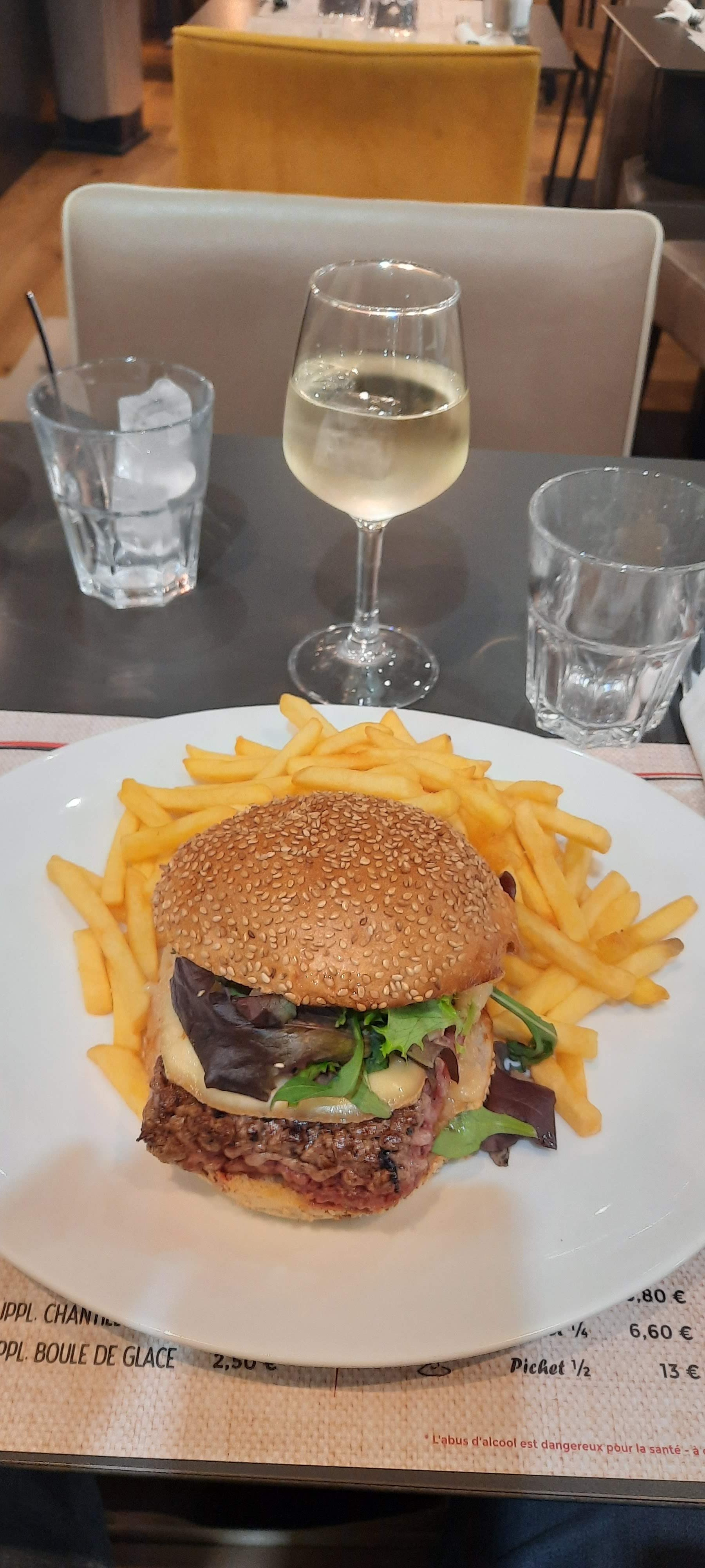 Très bon accueil Terrasse extérieure Cheeseburger/frites 14 euros super bon Je recommande