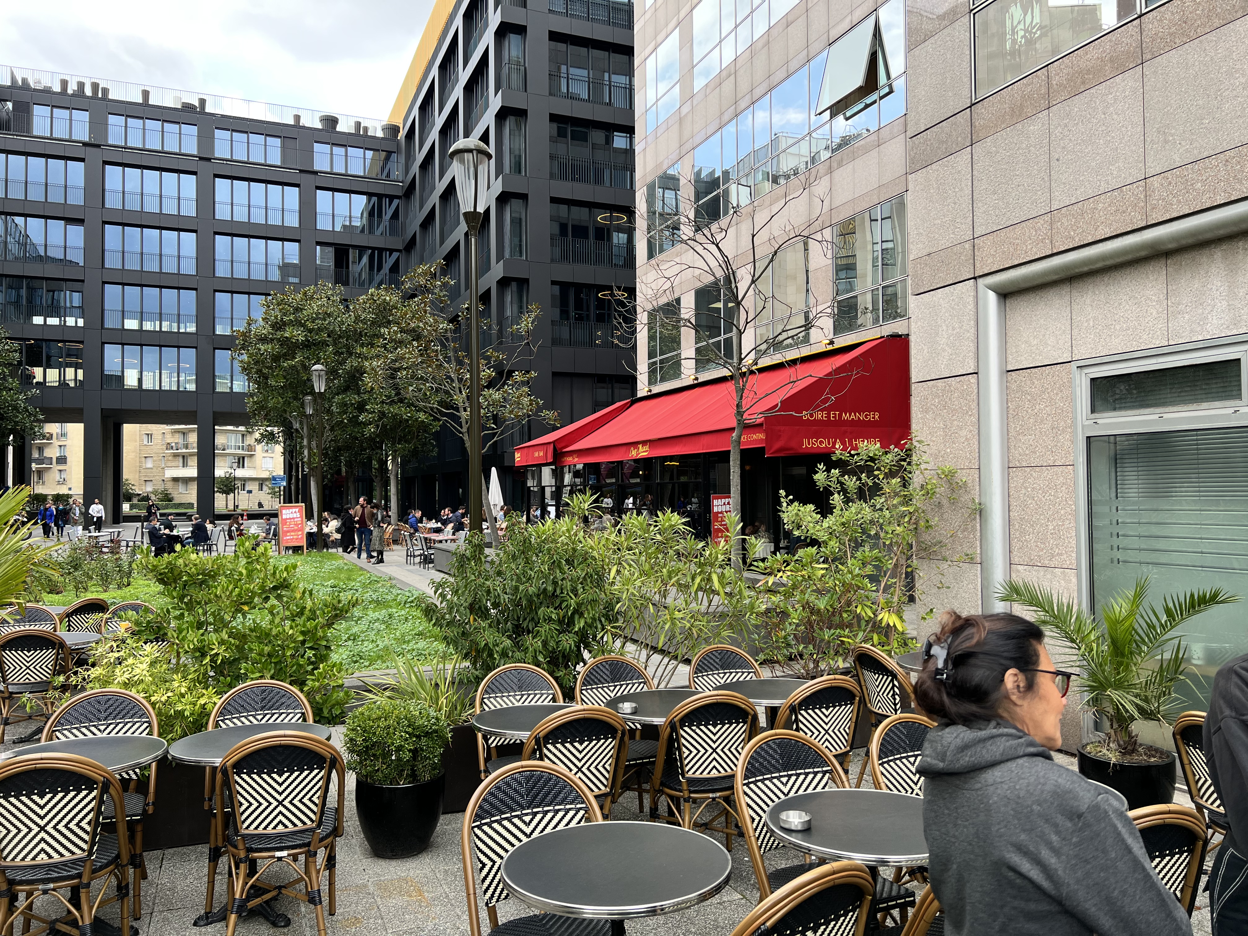 Belle terrasse, depuis que la deco a ete refaire c'est un lieu refait avec gout. Ideal pour dejeuner ou prendre un café. Terrasse aménagée egalement pour le froid et la pluie. Accueillant, service agreable. Rien a redire !