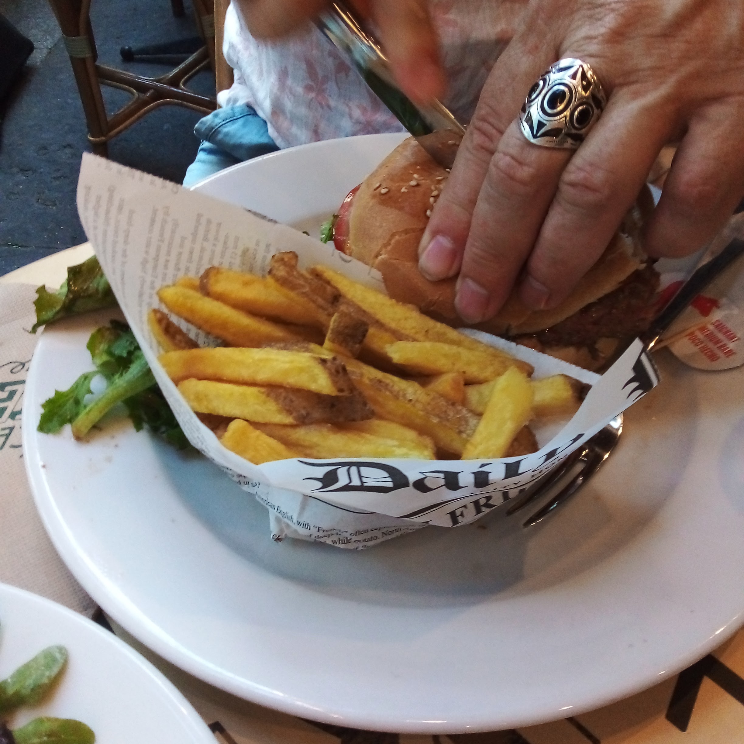 J’ai commandé un burger, le pain avait l’air en date et industriel pourtant pour un plat a 17€ je trouve cela dommage car le lieu est sympathique et le service y est agréable…