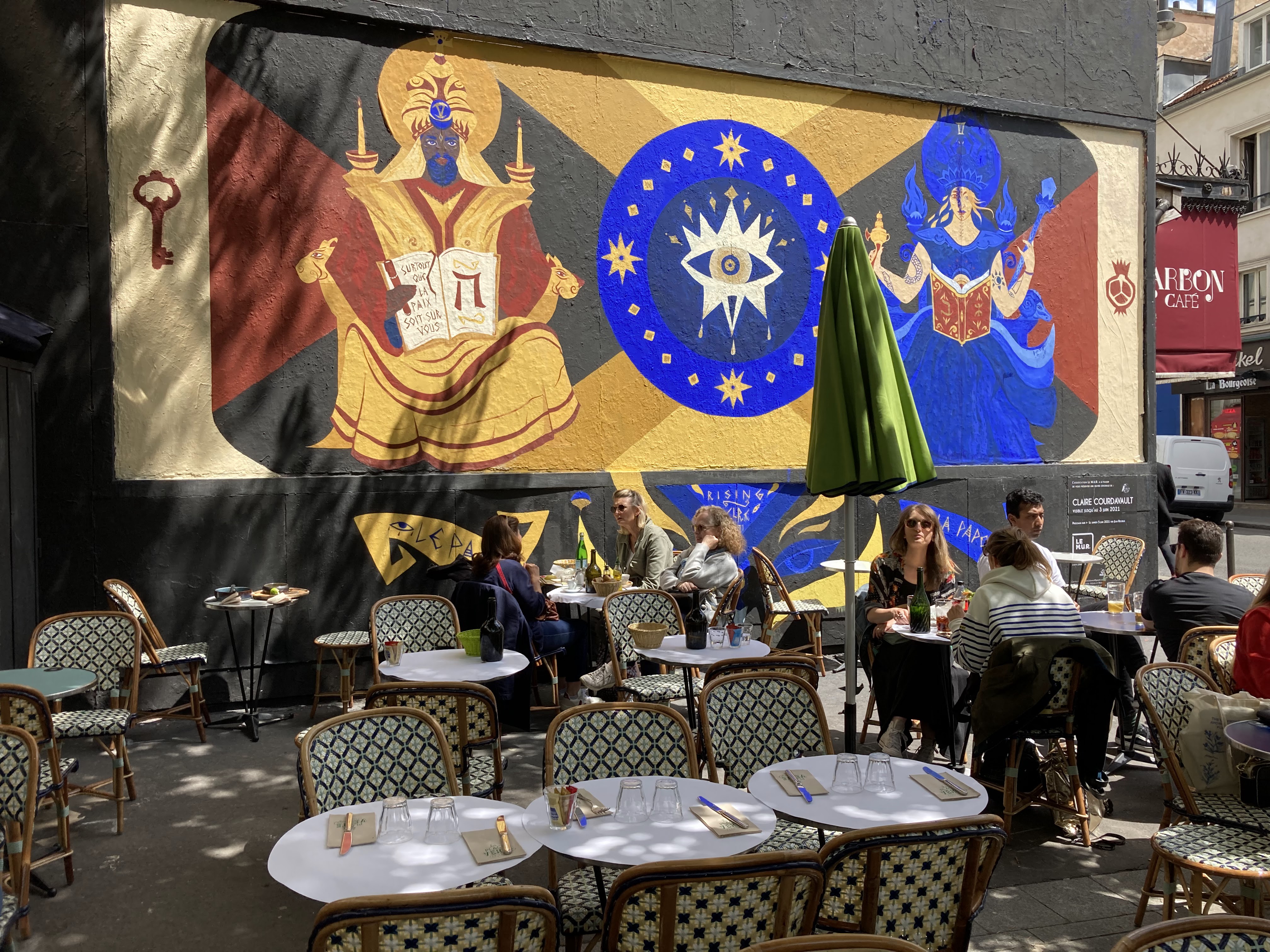 Terrasse agréable, lieu idéal pour admirer les oeuvres ephémères du mur Oberkampf.
