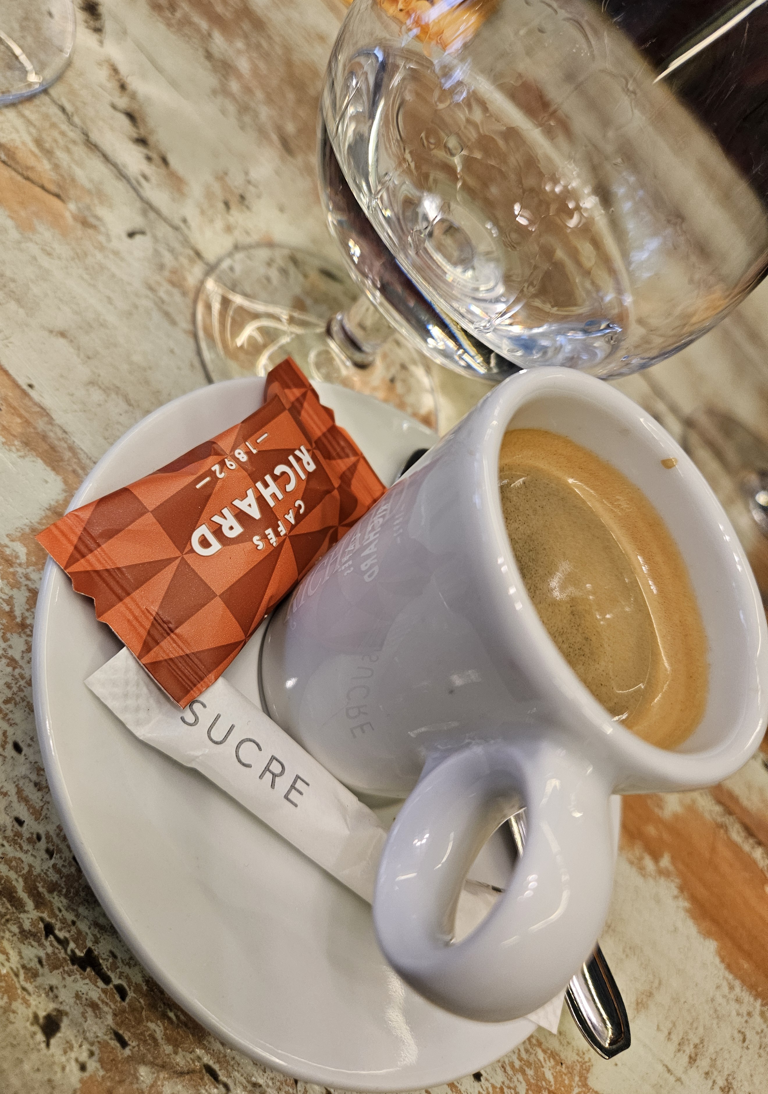 Quand vous commandez un café dans cette brasserie, c'est un café ☕ et c'est tout. Dans la majorité des brasseries parisiennes chaque café est servi avec un verre d'eau. A cet endroit, c'est just et ça fait un peu radin.