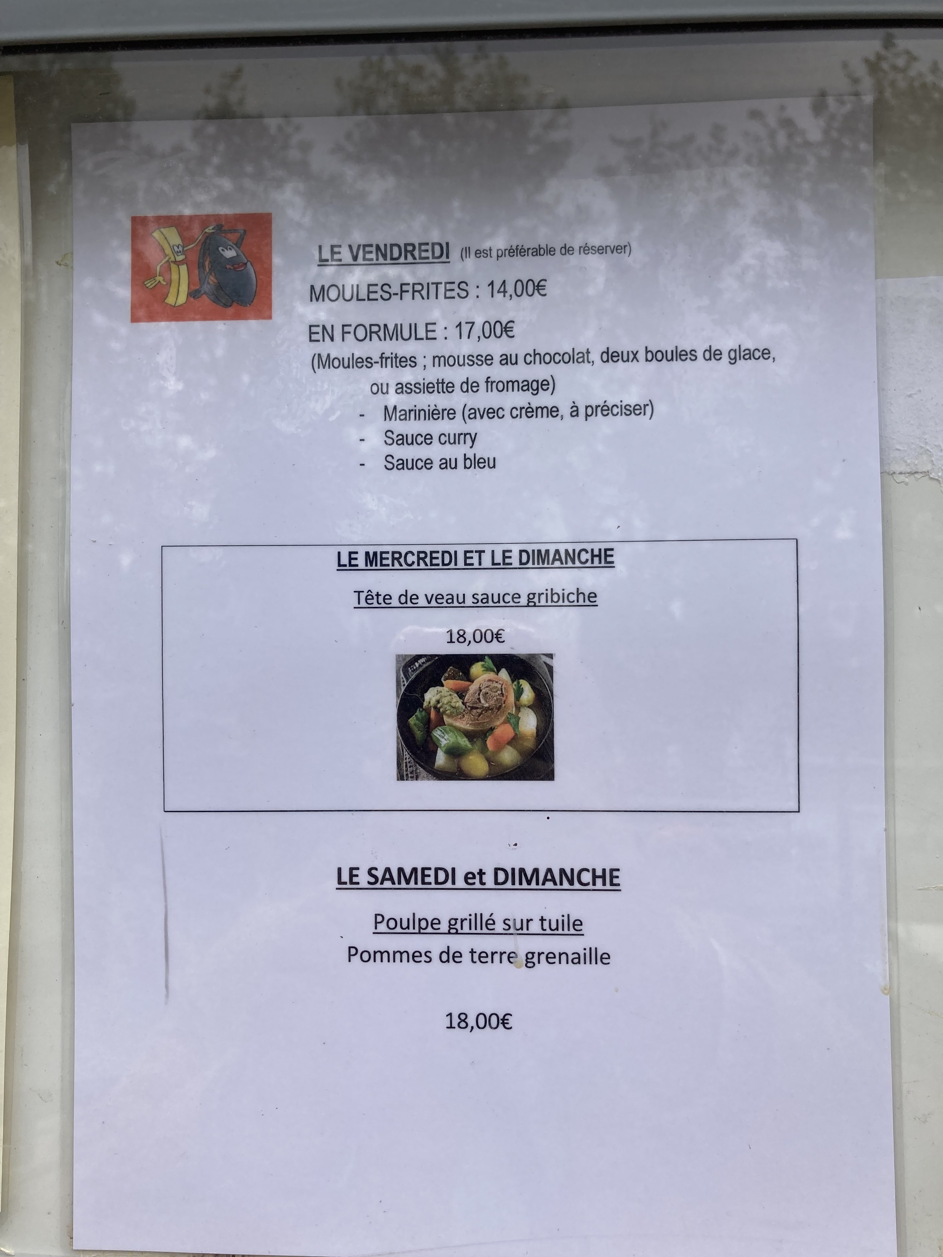 Nous sommes venus manger ce midi, on nous averti qu'exceptionnellement il y aura moules frites et tête de veau à la carte aussi ce dimanche au vu de la demande des clients ... Au moment de commander, il était 12h45, rupture de tête de veau ainsi que de moules frites et pour les enfants plus de saucisses.. (très demande la veille au soir sois disant, alors qu'il y en avait en cuisson ???) Le service est très long, certaines assiettes arrivent avec très peu de frites, et surtout certaines tables se font servir en même temps des moules frites ??? Très déçu, ce n'était pas là première fois que l'on venait et ça sera surtout la dernière. Dommage le cadre est sympathique !!