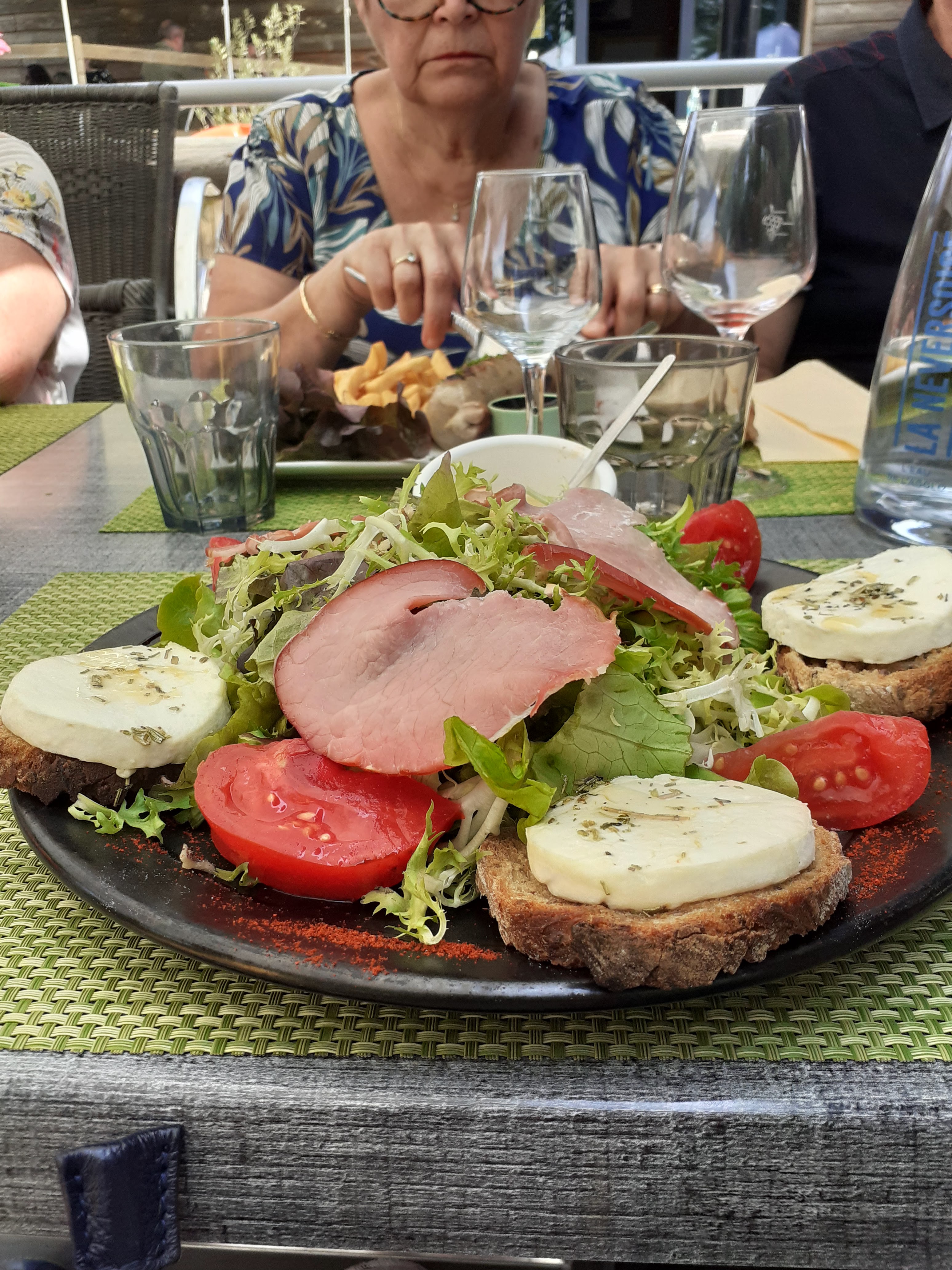 [EN] A small family meal on a Sunday lunchtime terrace. I dared to order a duck breast while the ducks (still alive) were walking along the canal. They were not offended. It was very tasty and the staff were very friendly. [FR]Petit repas en famille un dimanche midi en terrasse. J'ai osé et j'ai commandé un magret de canard alors que les canards (encore vivants) se baladaient au long du canal. Ils n'ont pas été vexés. C'était super bon et le staff super aimable.