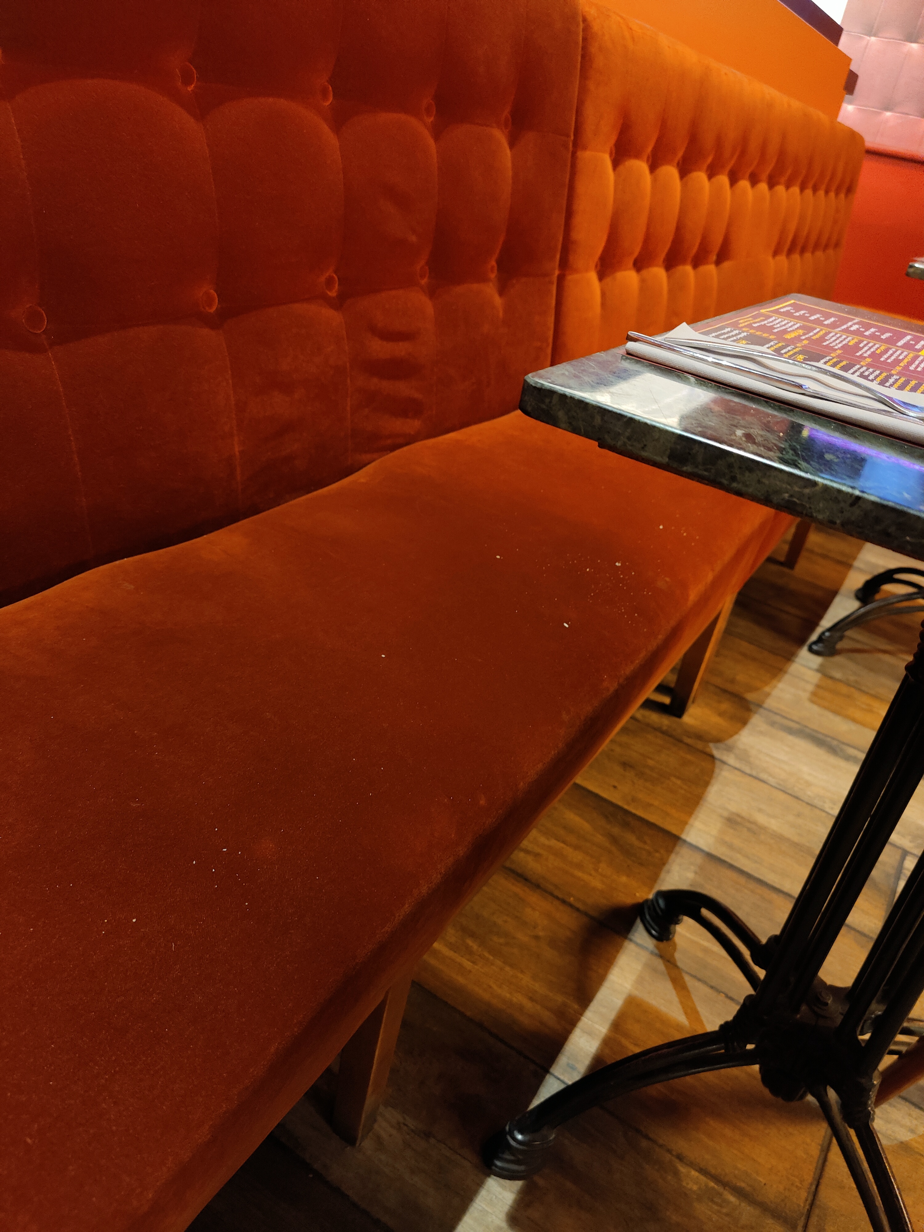 Bien pour prendre une boisson sans s s'éterniser. Du passage, du bruit, et parfois des poussettes. Donc on est obligé de se déplacer quand ce ne sont pas des gamins qui courent sur les banquettes. Mais si vous avez besoin de boire un café, pas de souci il est bon